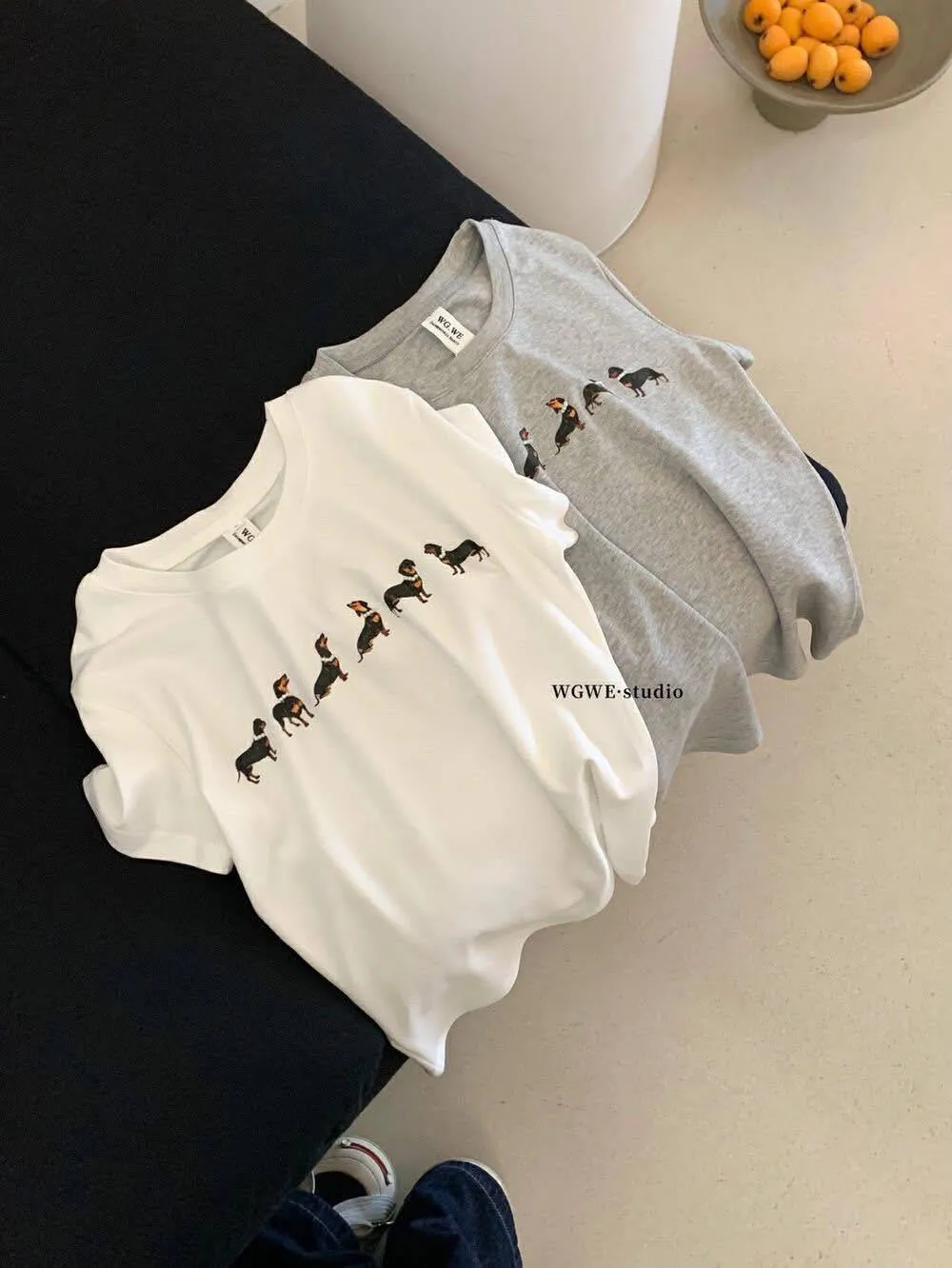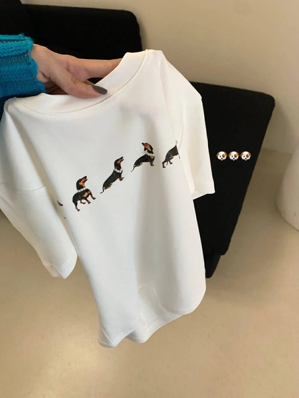 誰能抗拒這麼可愛的臘腸狗狗~ 搭配立體精緻珍珠點綴 穿上立馬變身小可愛代表! 設計感印花 + 彈力材質 不只好穿還超有型~ 出門回頭率加滿分 狗狗控一定要收! #狗狗控尖叫 #臘腸狗太可愛啦 #珍珠細節超加分 #設計感T恤 #穿搭亮點在這裡 #每日OOTD 材質:棉