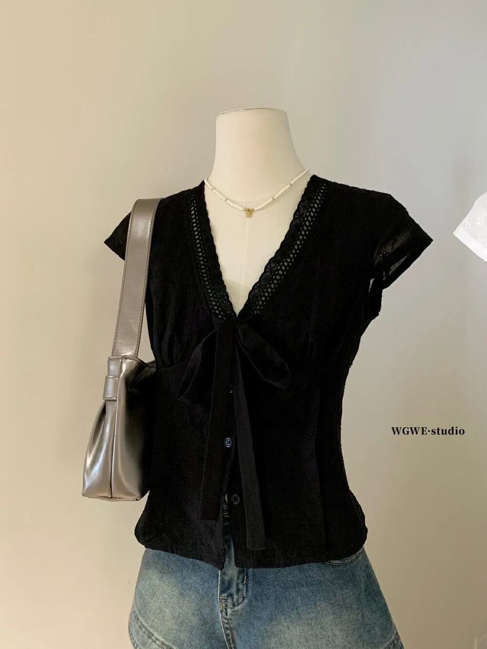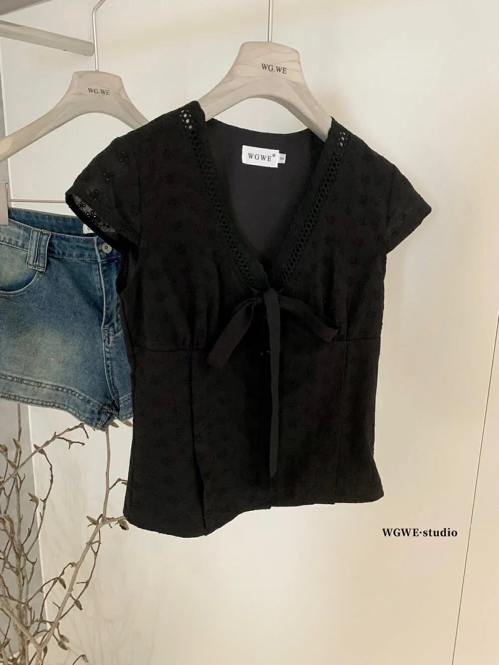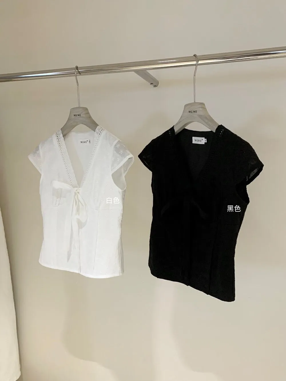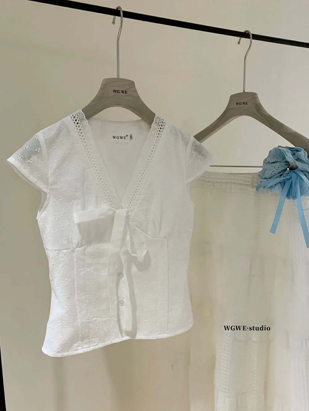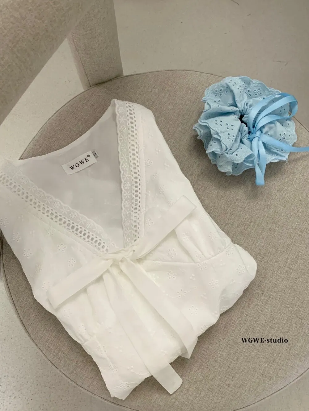 WGWE 甜心系蕾絲花邊蝴蝶結綁帶上
