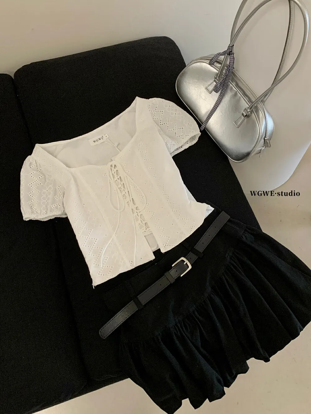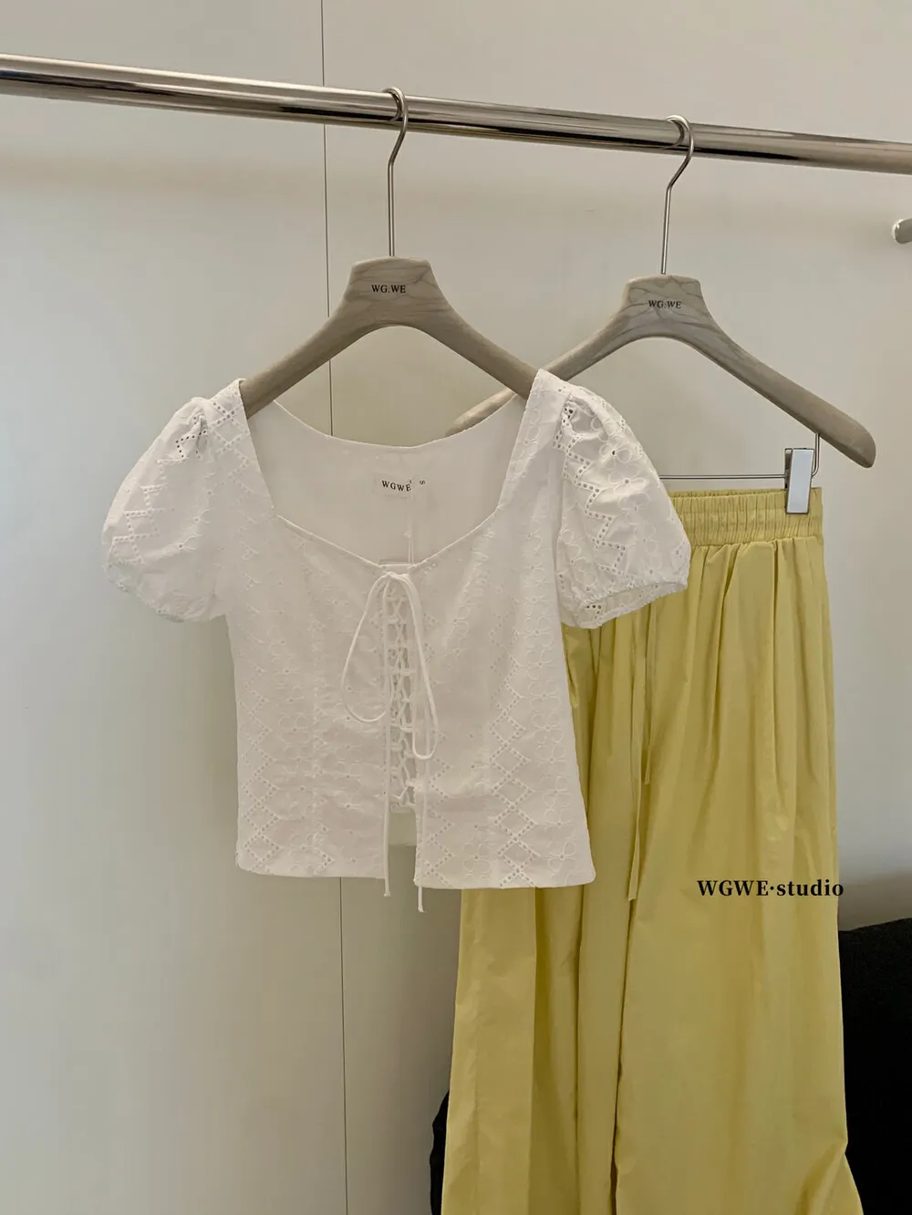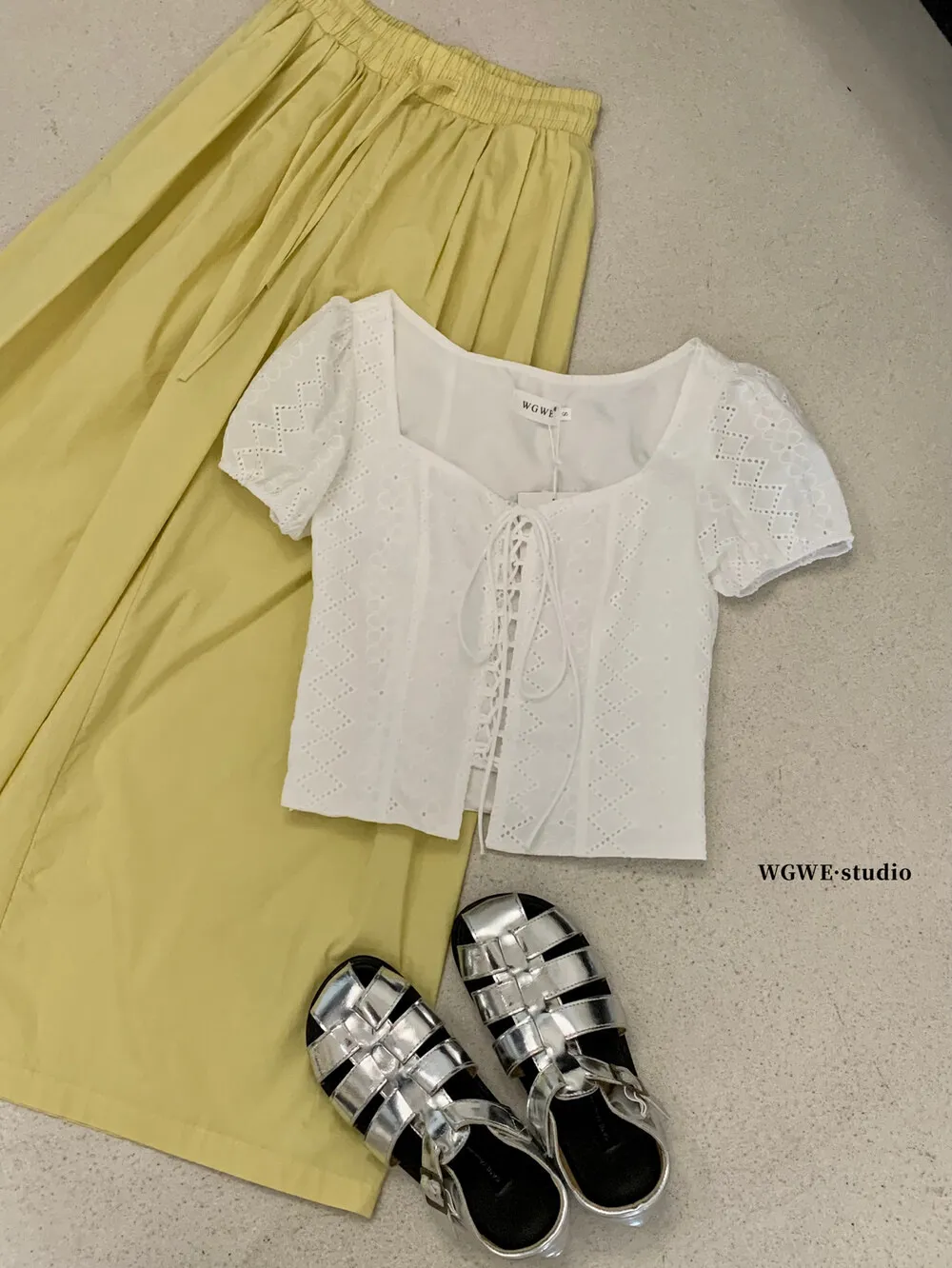 細膩鏤空刺繡與短版剪裁勾勒清新氣質