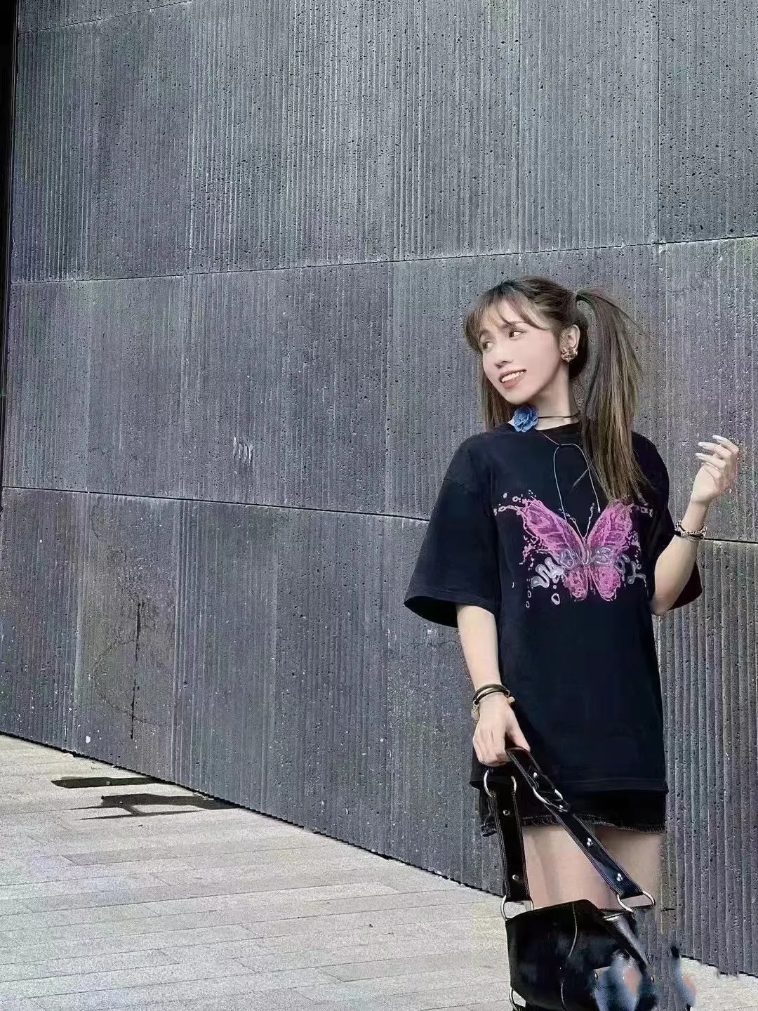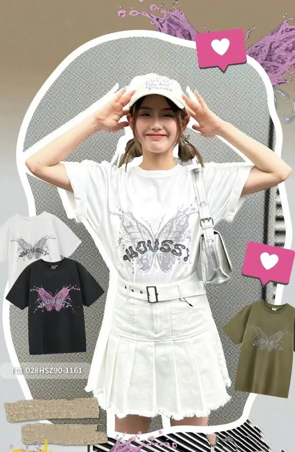 MOUSSY做舊感蝴蝶寬鬆T恤
