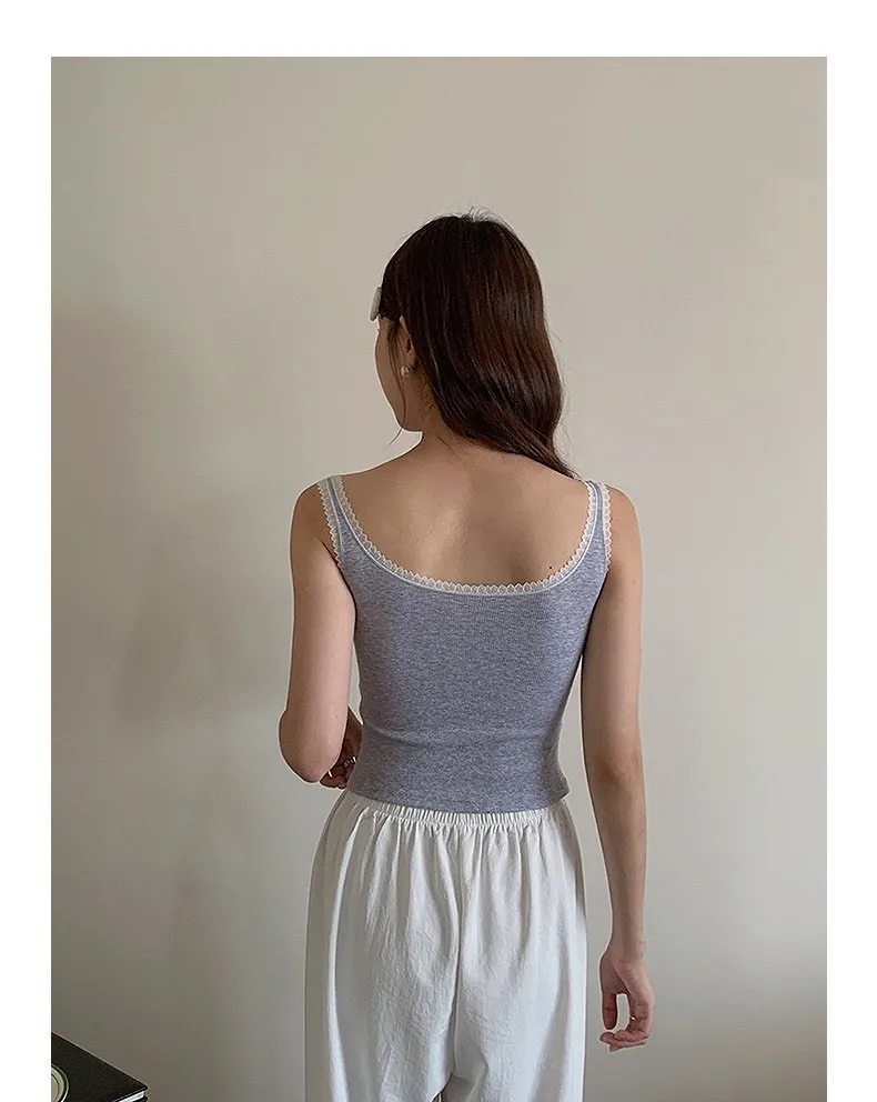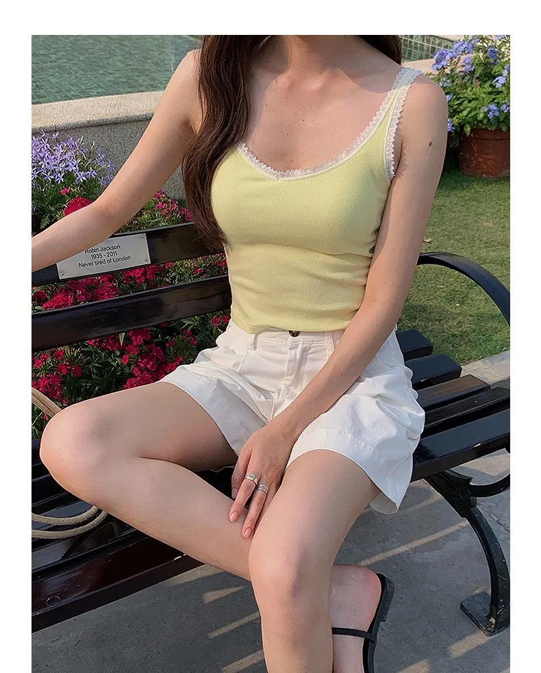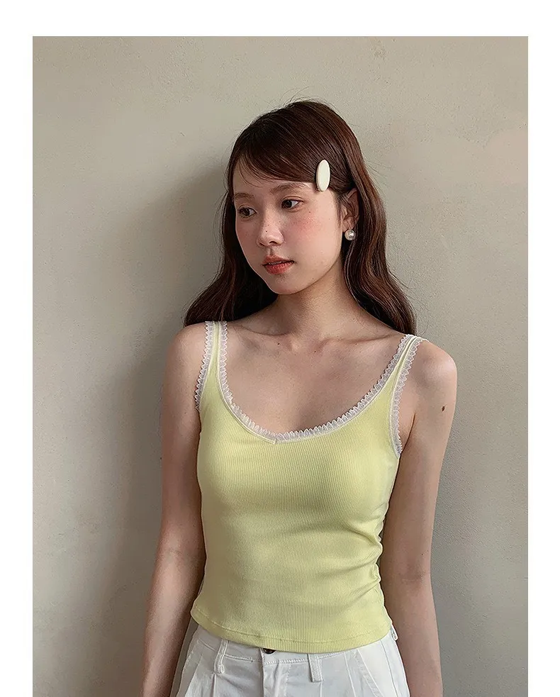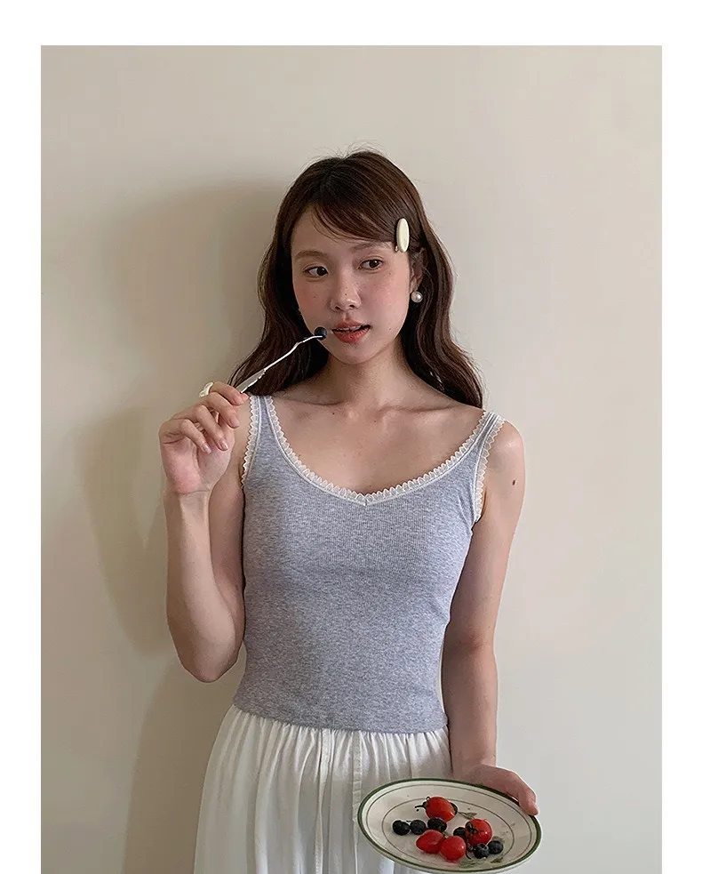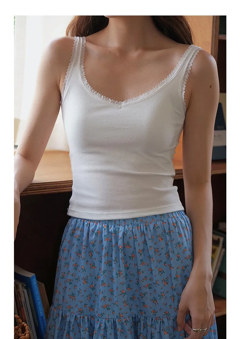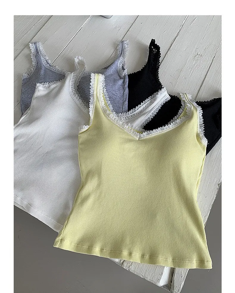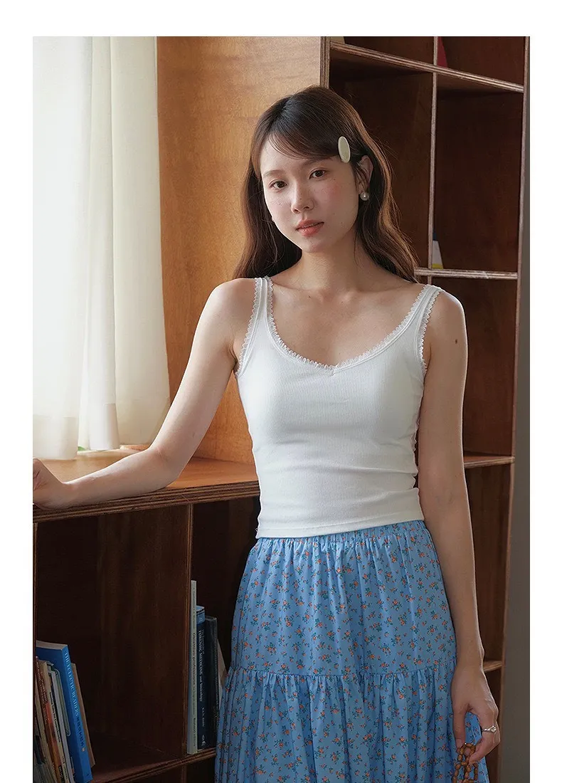 V領精緻蕾絲花邊,似花瓣輕盈環繞