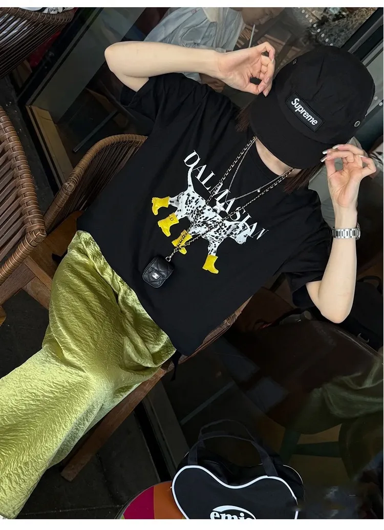 俏皮斑點狗小黃靴插畫Tee