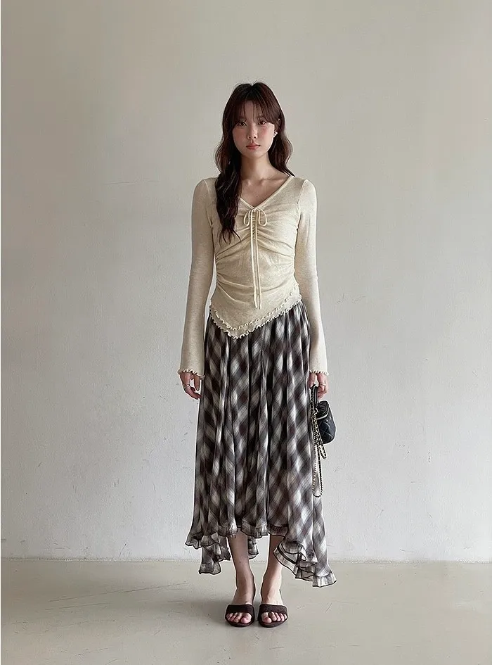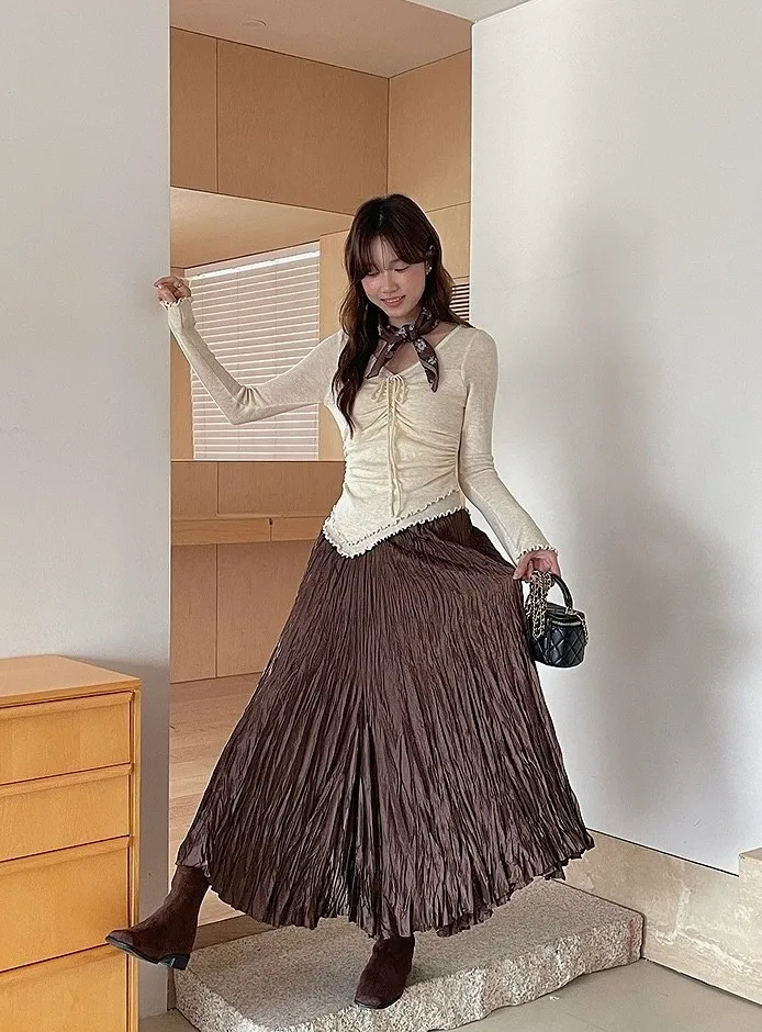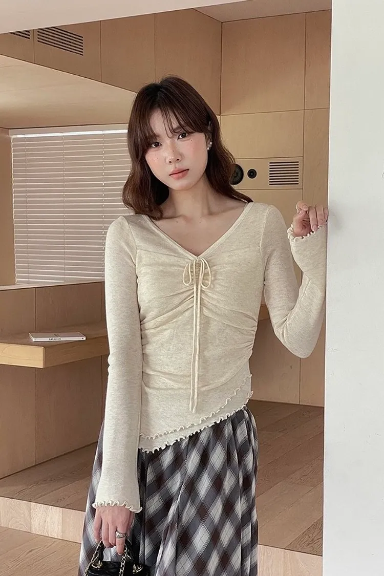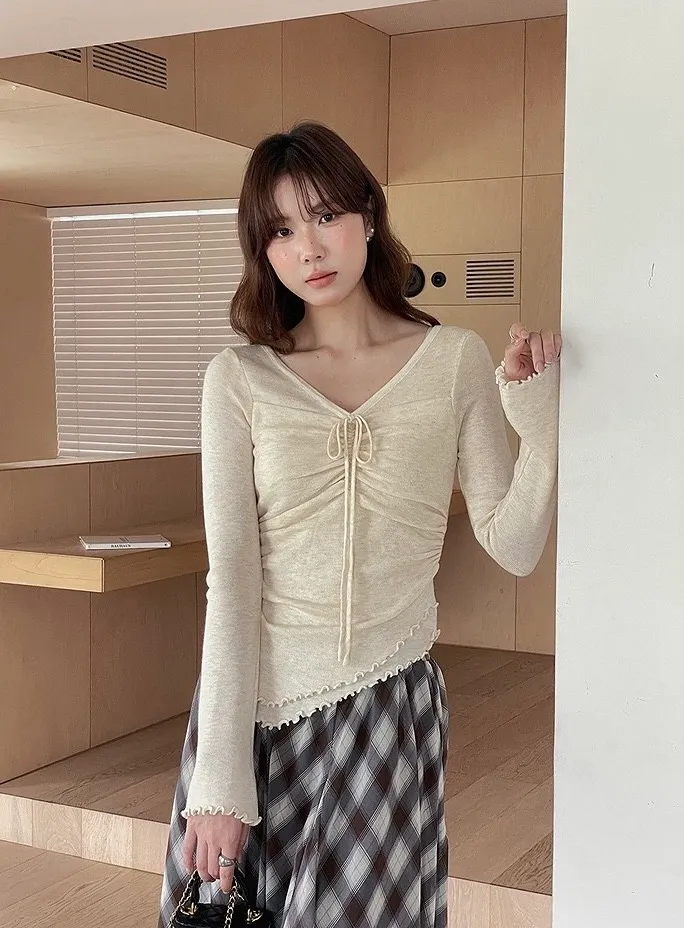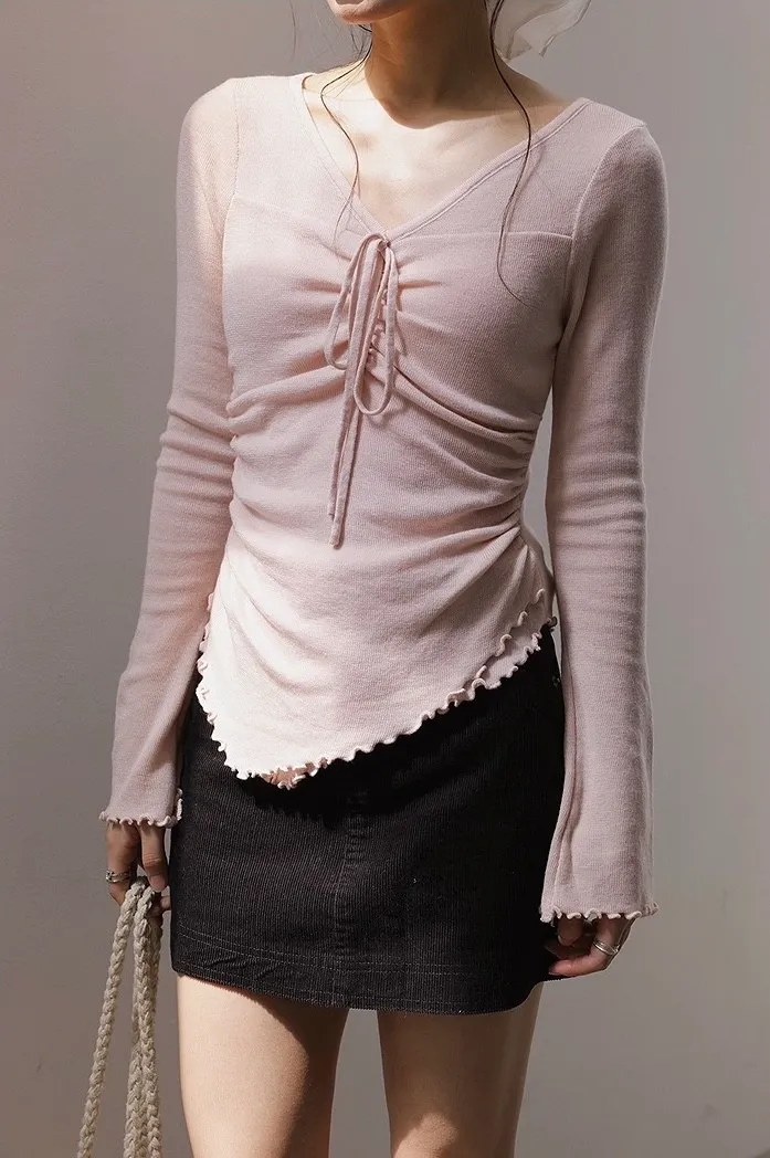 【雲釀雪葩】優雅木耳邊復古褶皺針織上衣