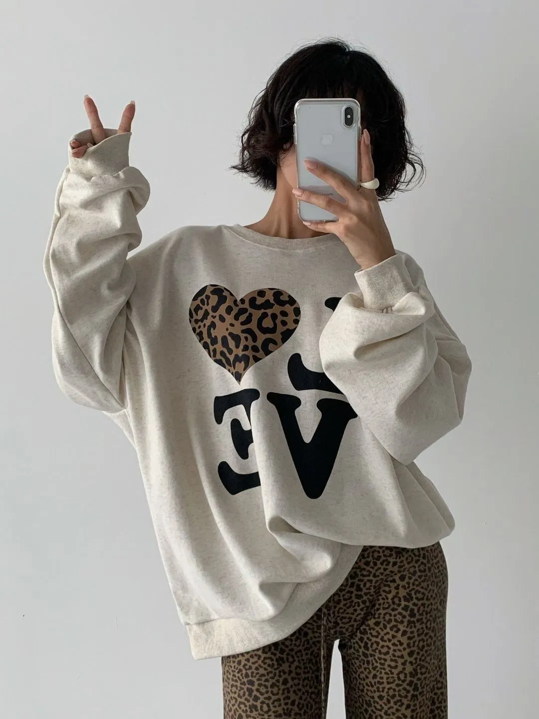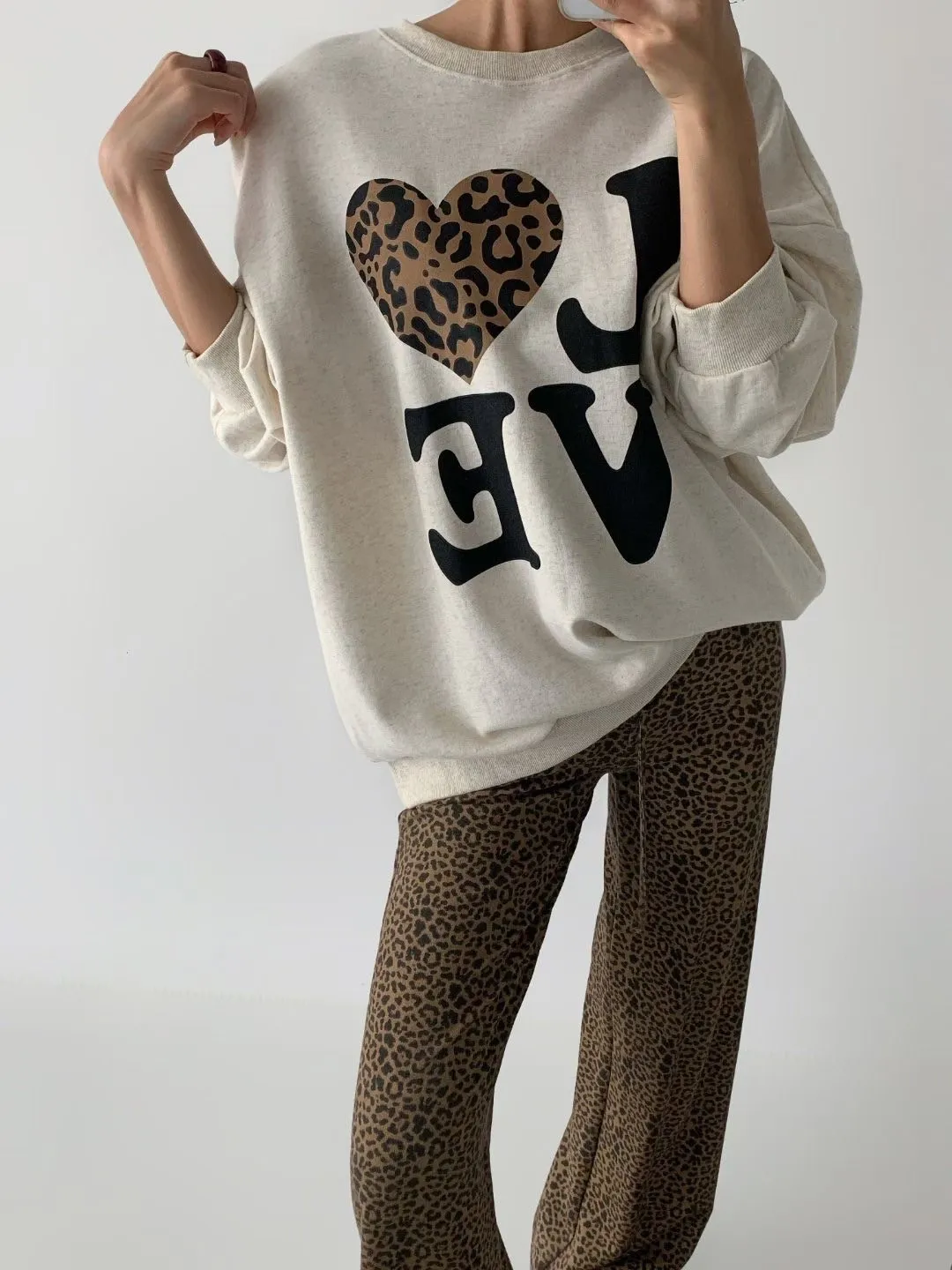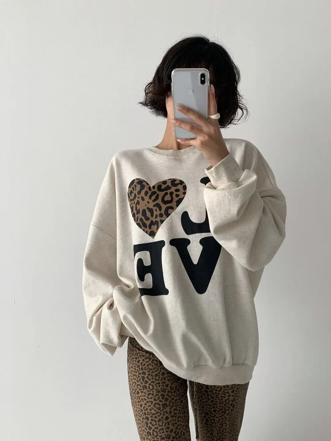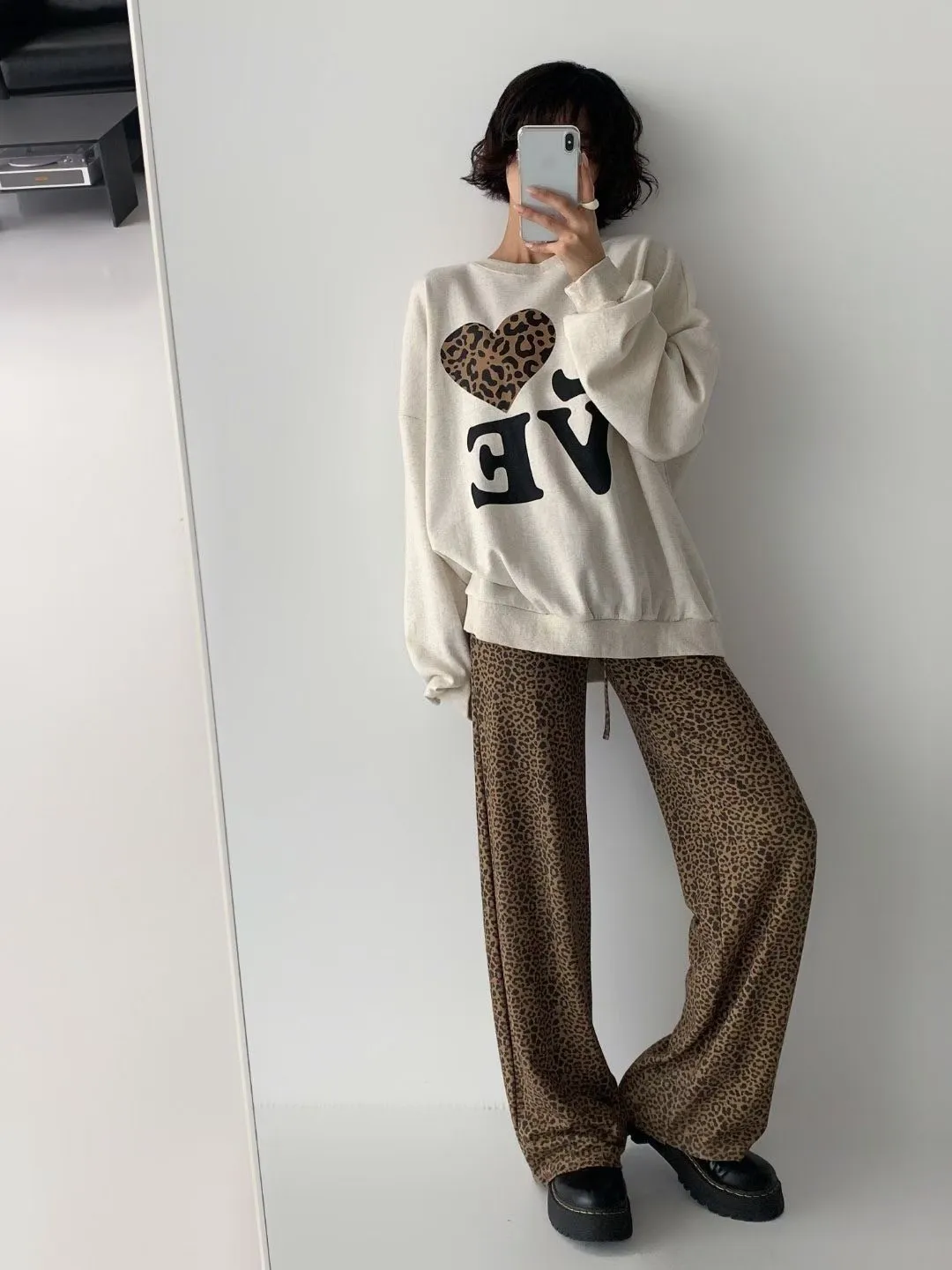 韓國🇰🇷LOVE豹紋愛心棉質大學tee