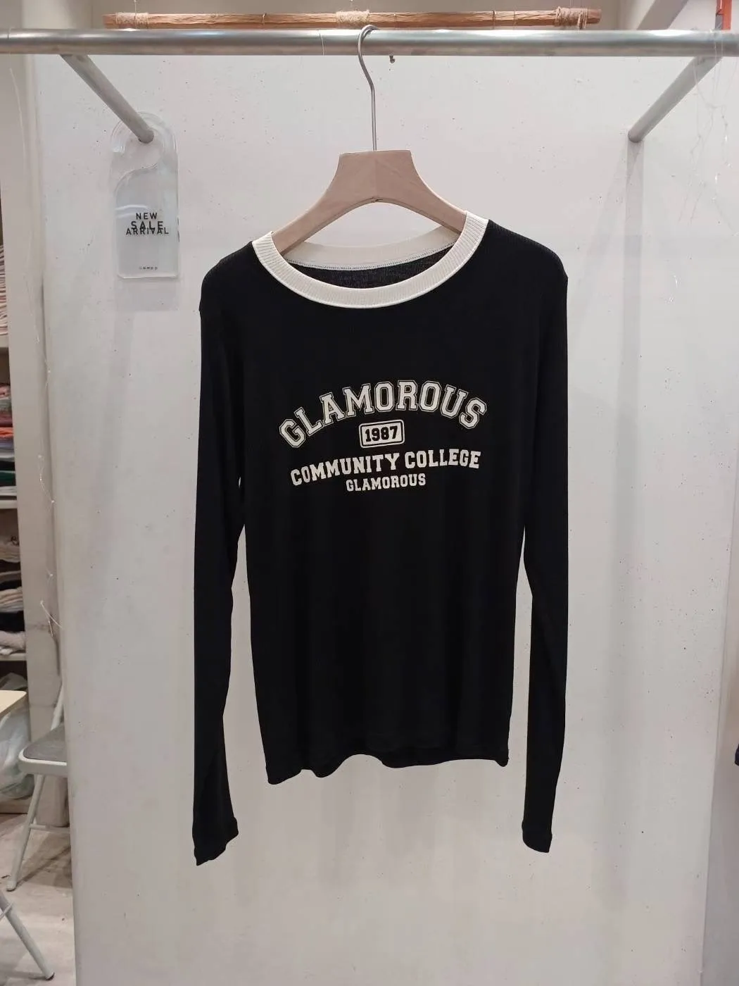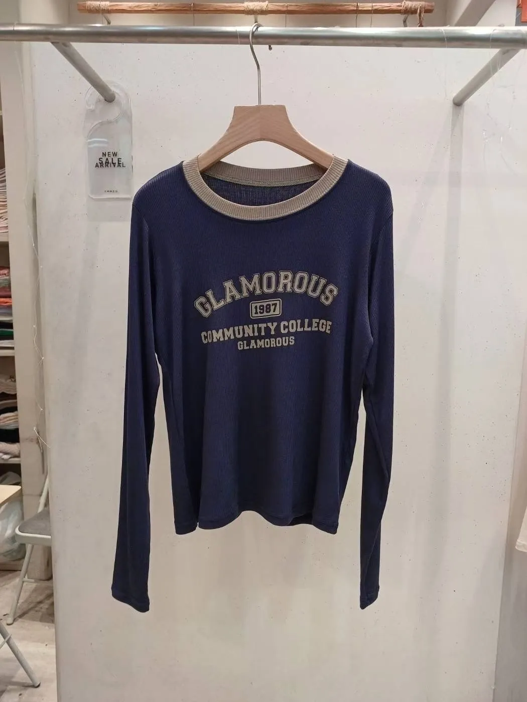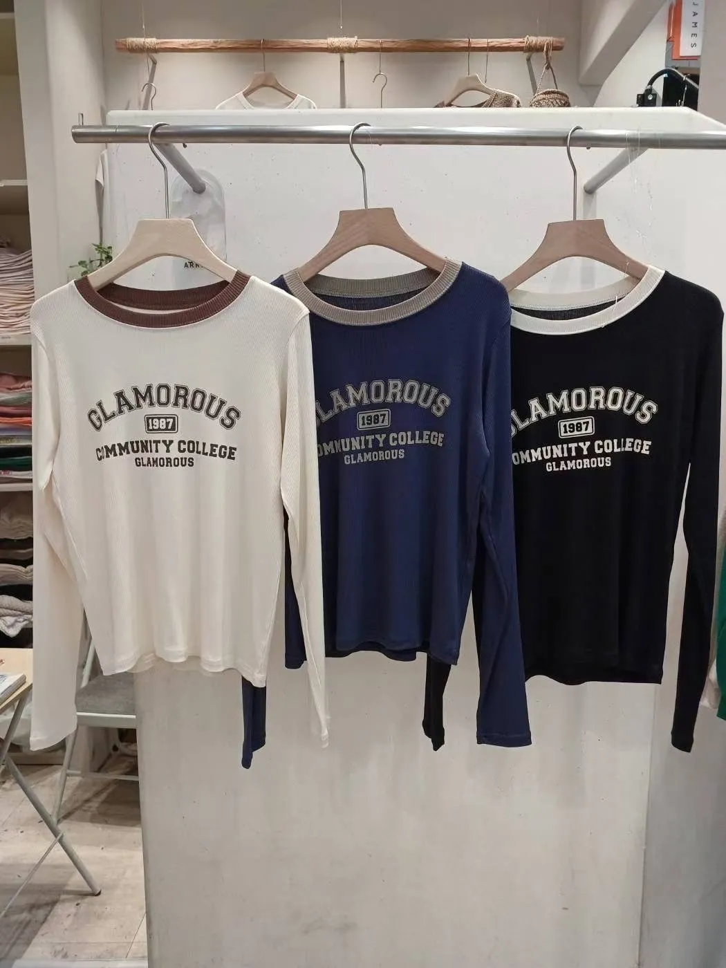 韓國製🇰🇷撞色領口字母印花薄長袖上衣
