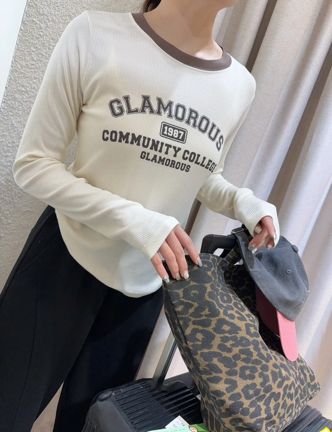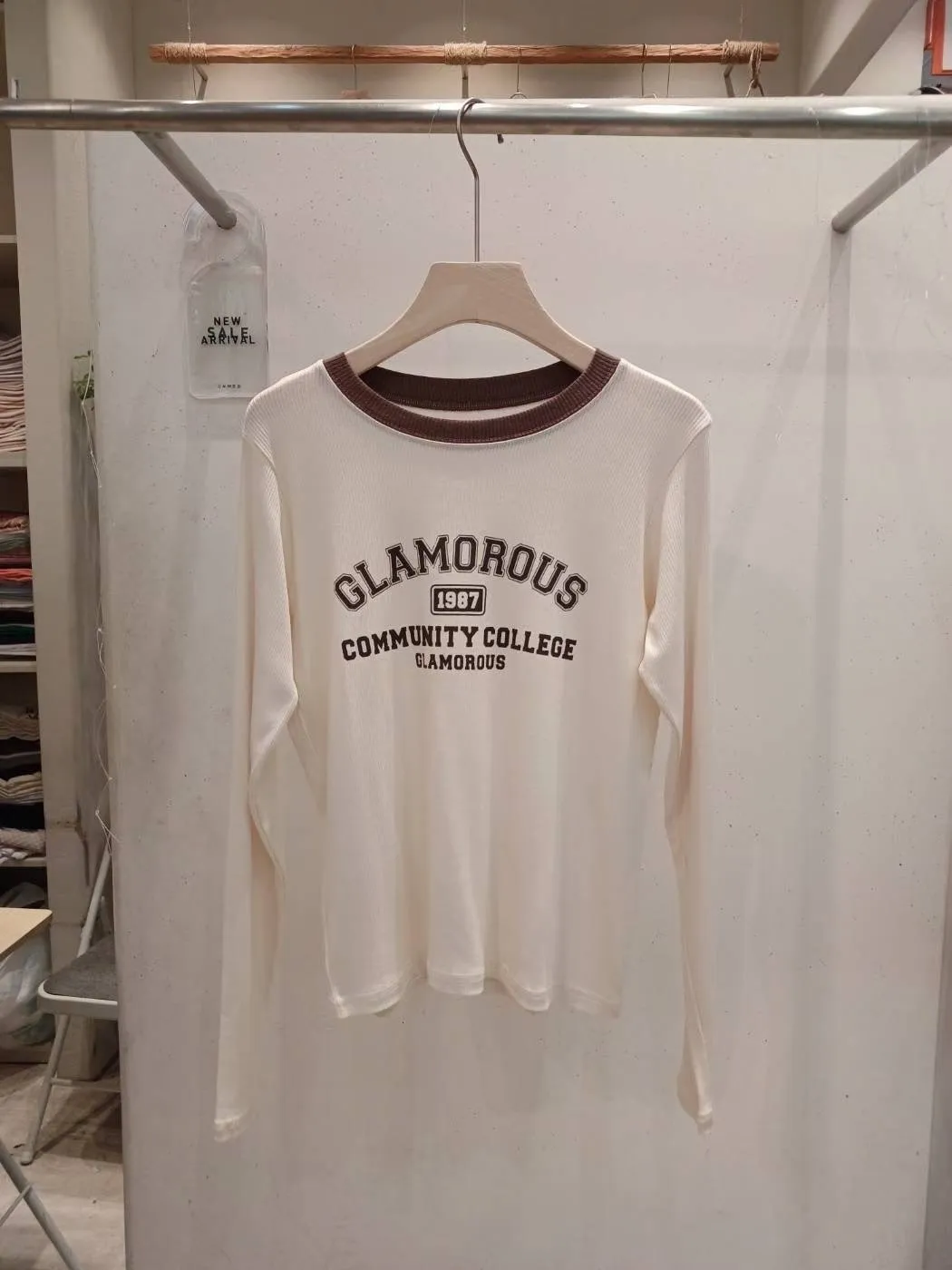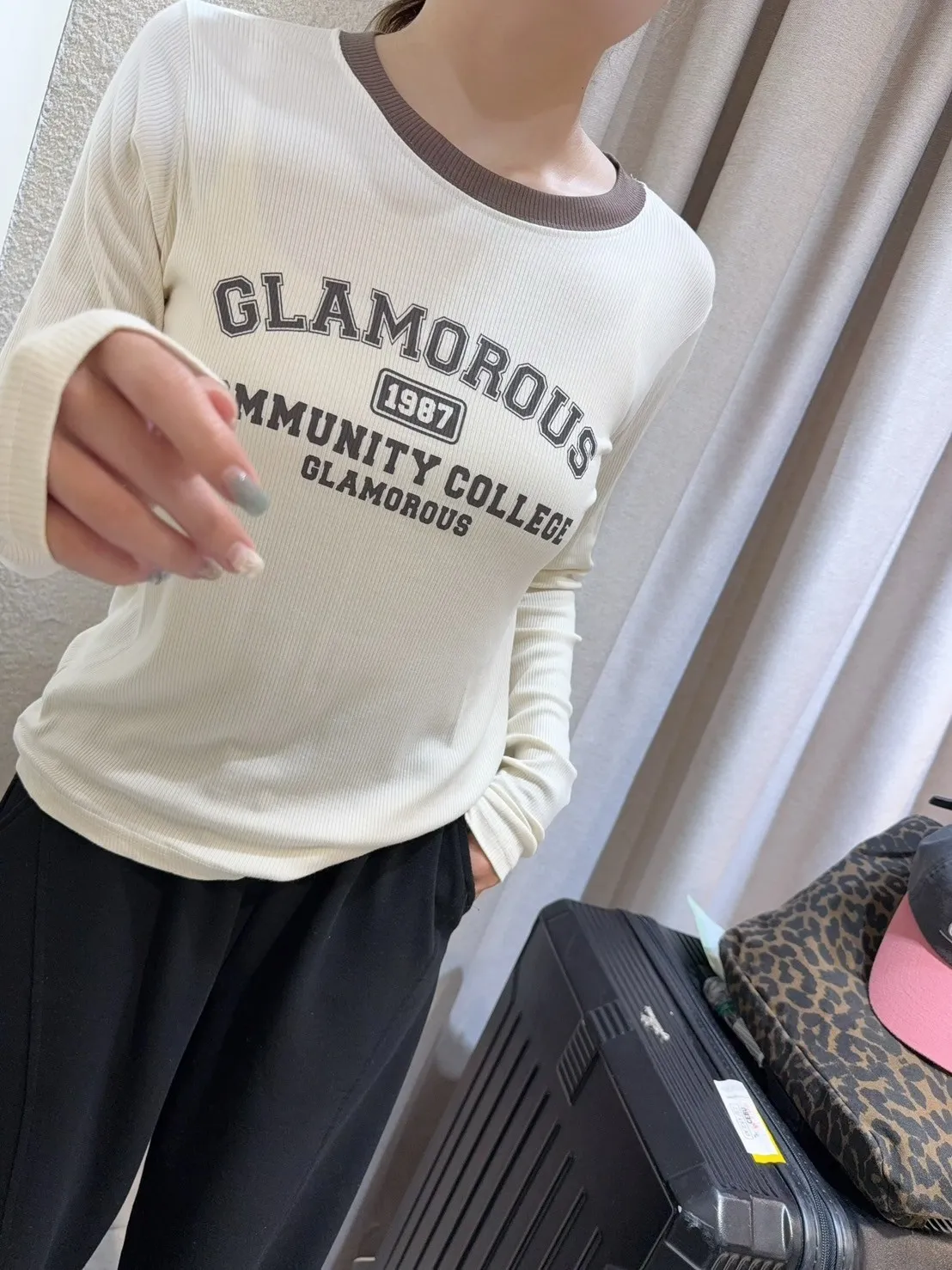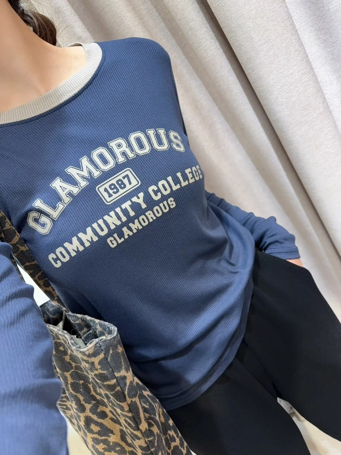 韓國製🇰🇷撞色領口字母印花薄長袖上衣