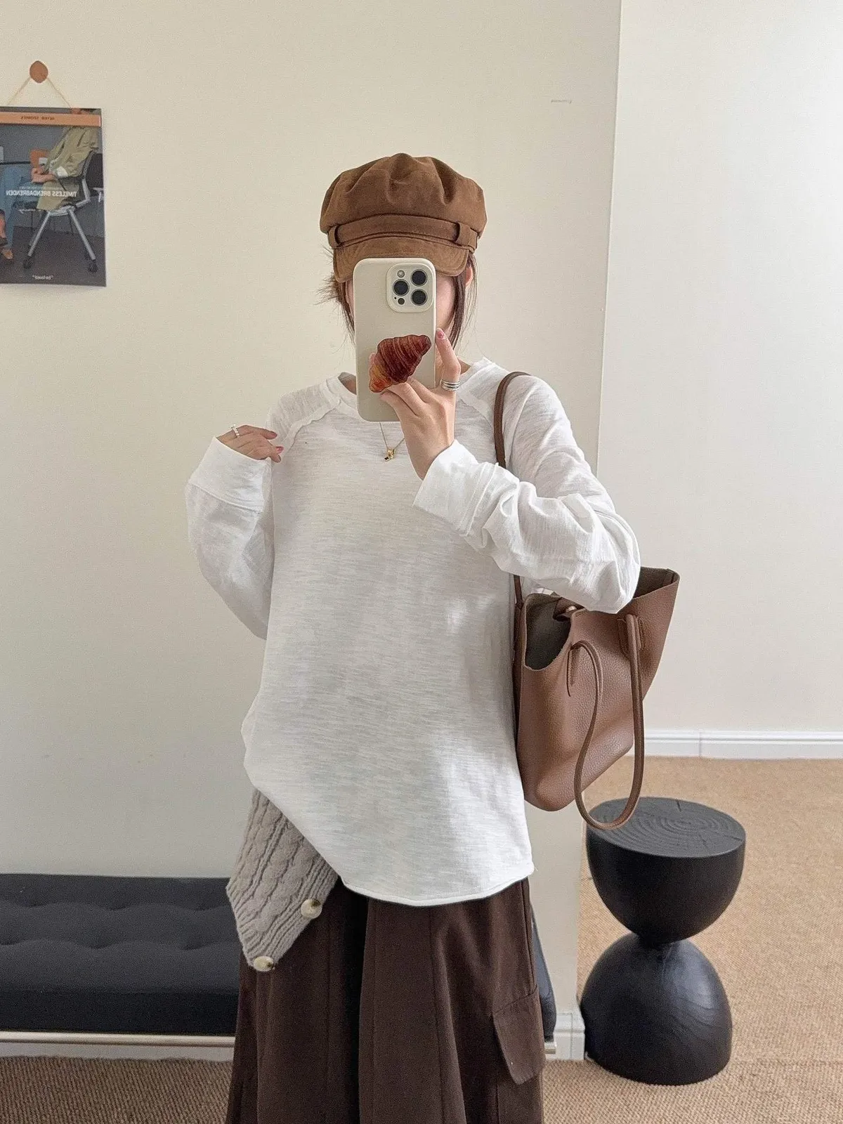圓領+毛邊設計小細節,低調中帶點俏皮感✨