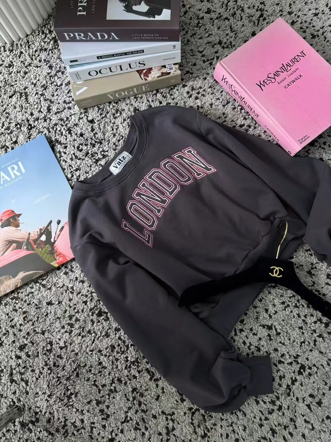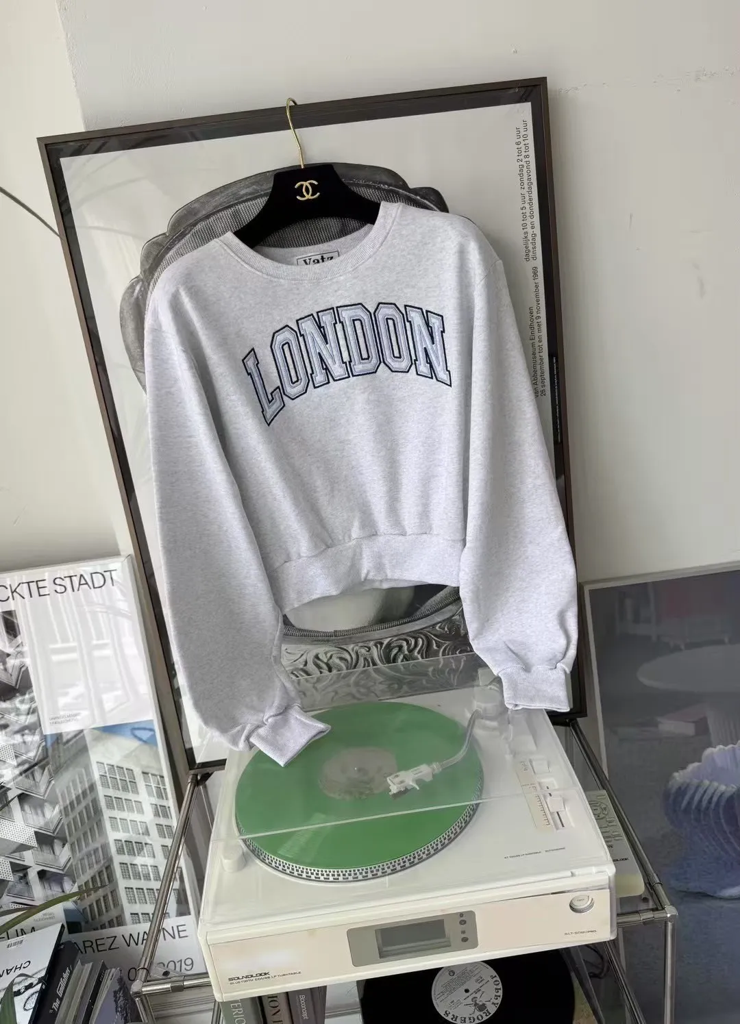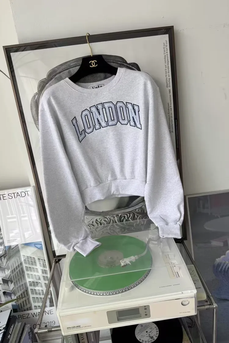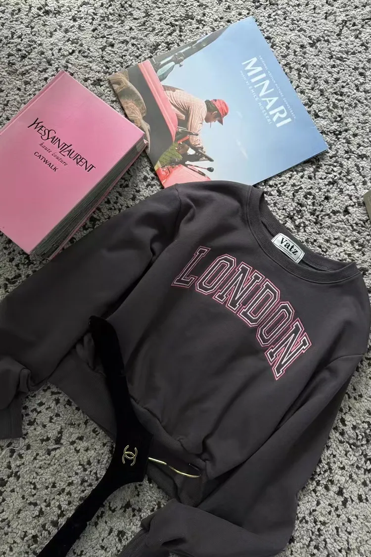 韓國製🇰🇷LONDON撞色刺繡短版大學上衣