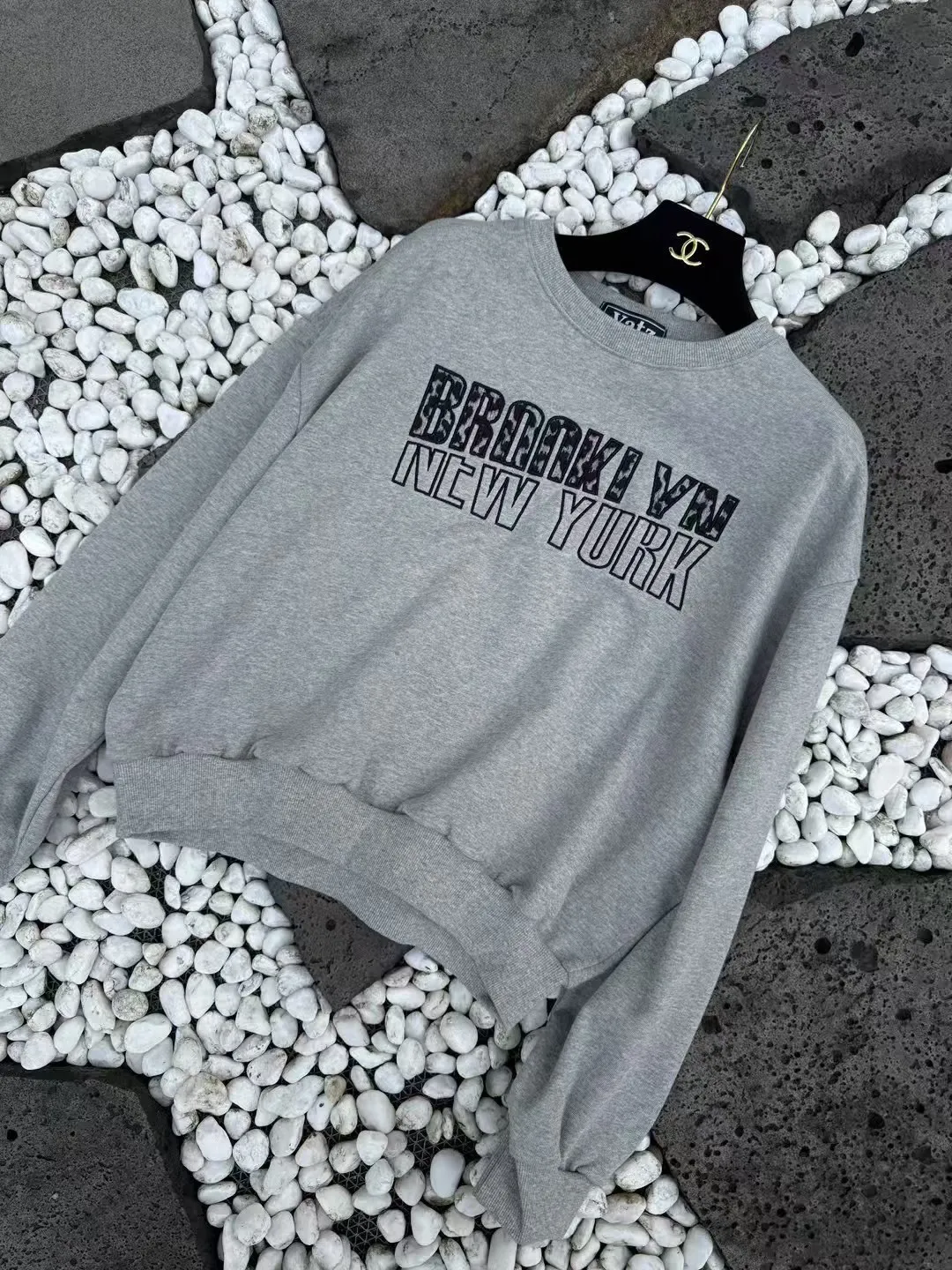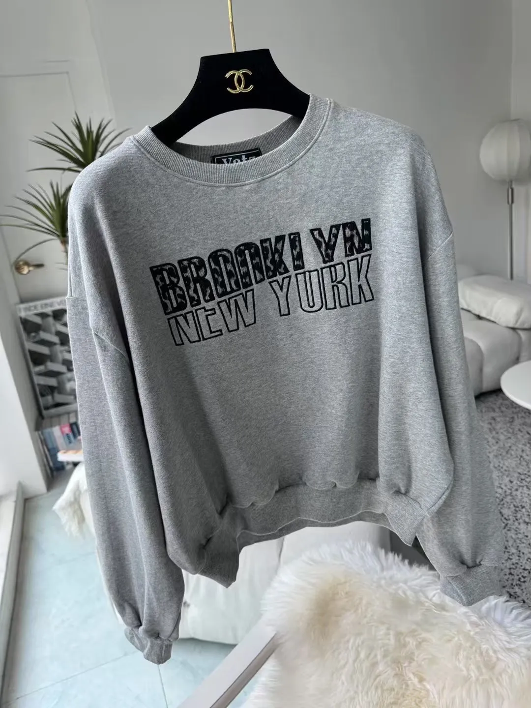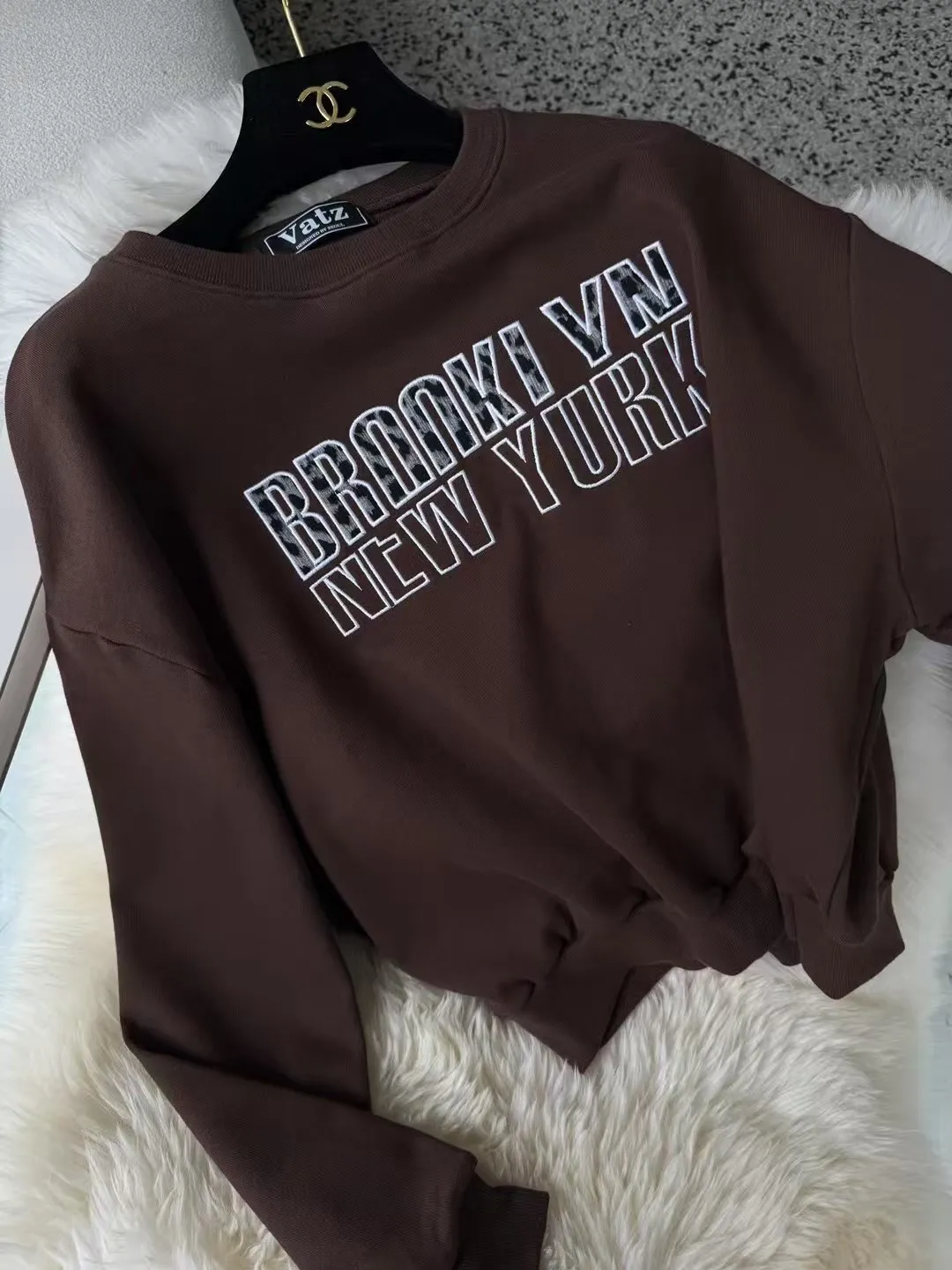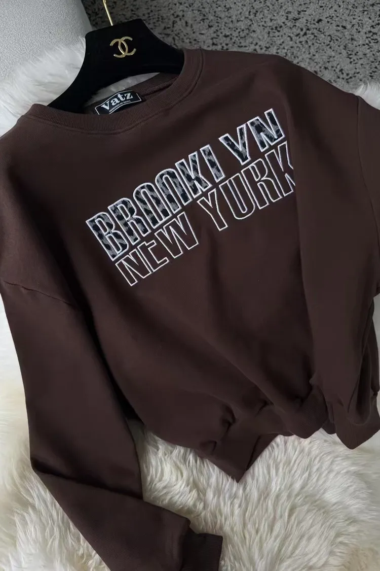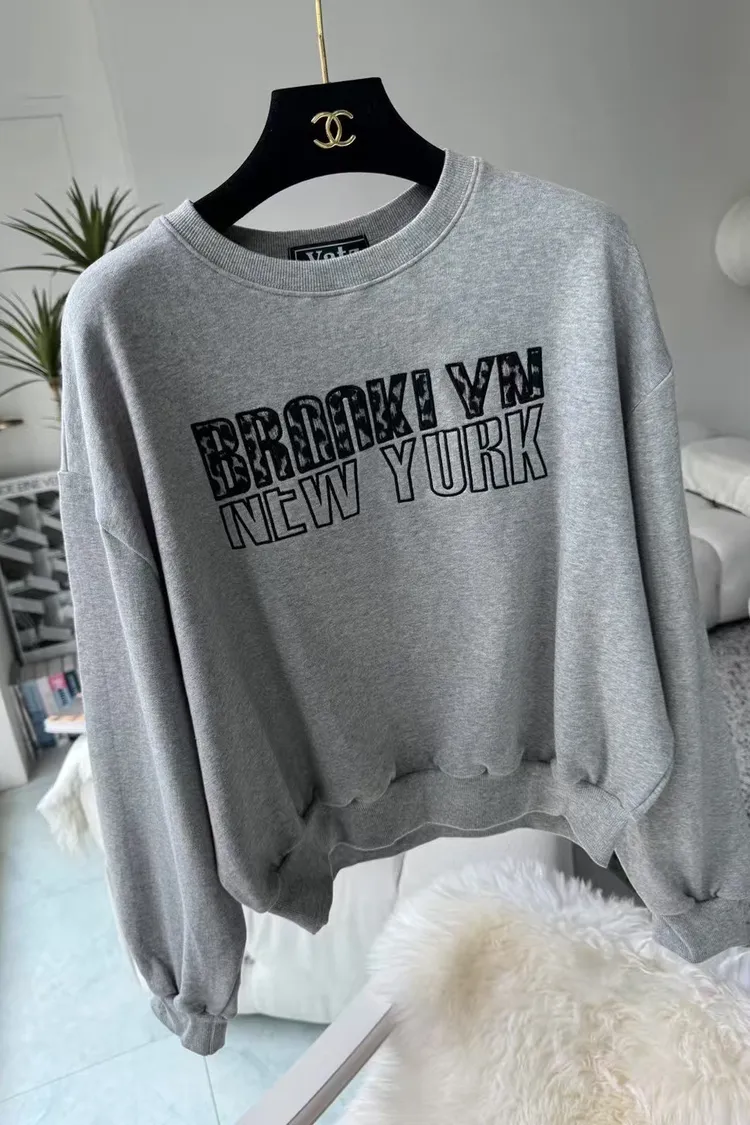韓國製🇰🇷豹紋絨刺繡字母短版大學上衣