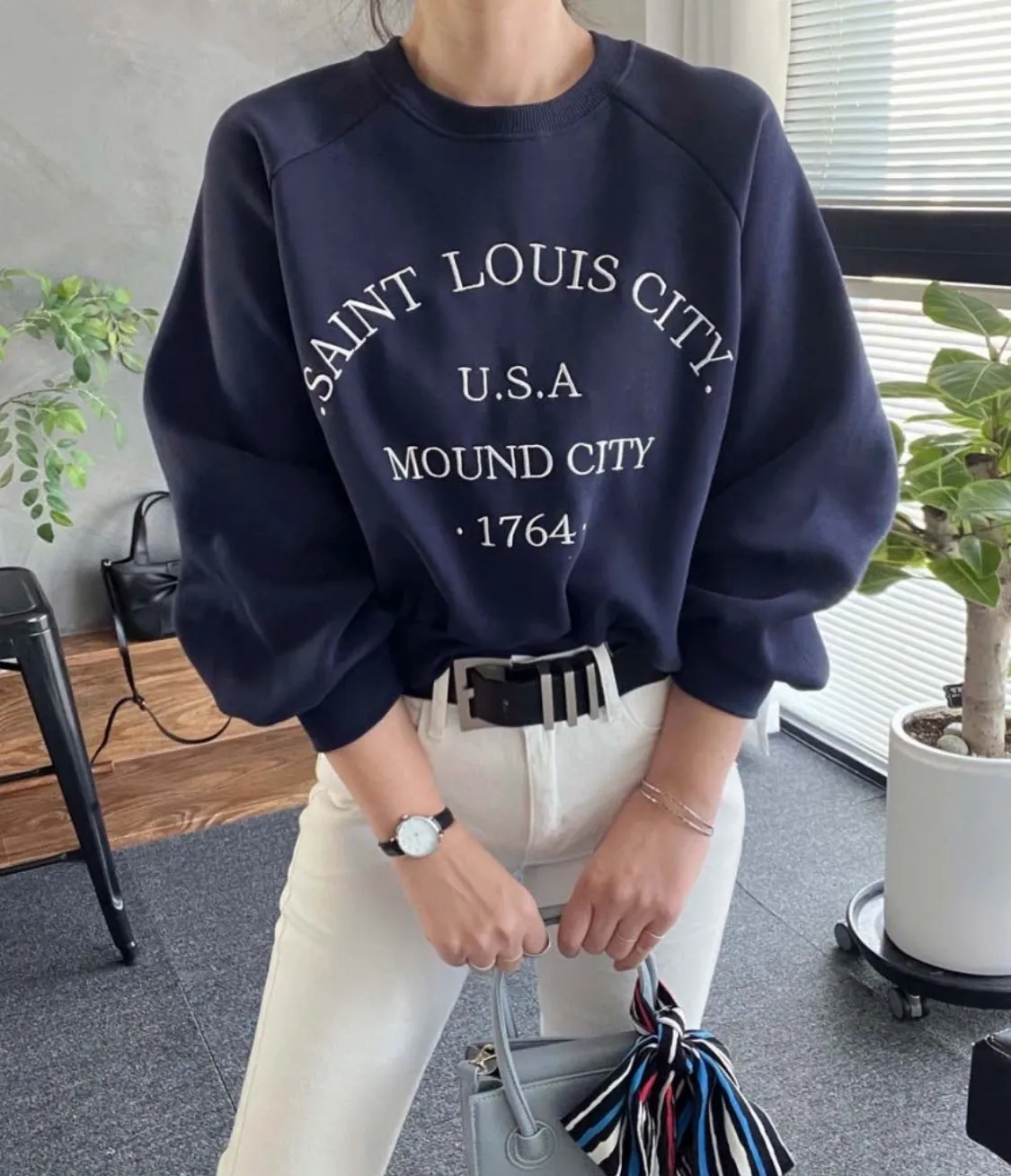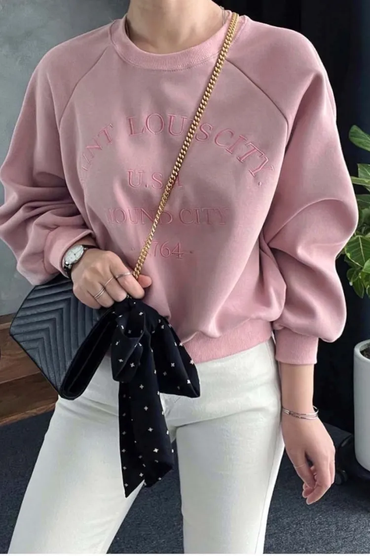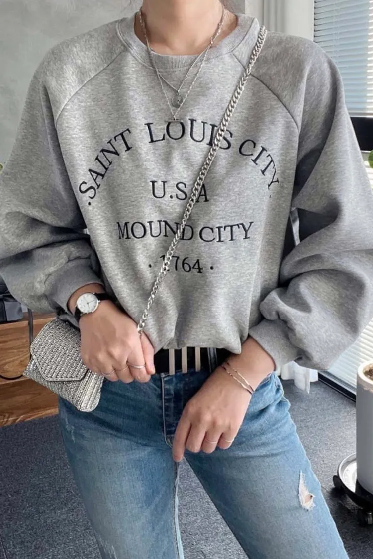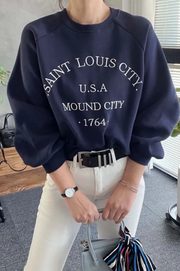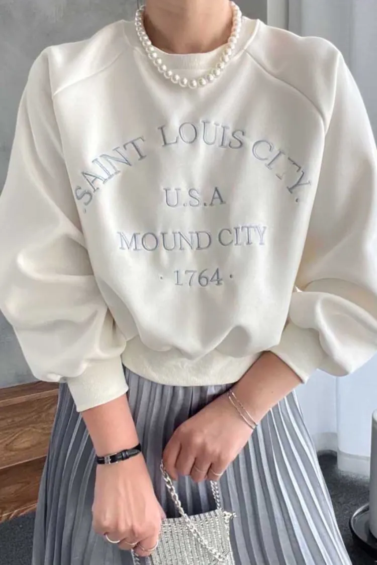 【優雅日常】刺繡英文USA落肩縫線上衣
