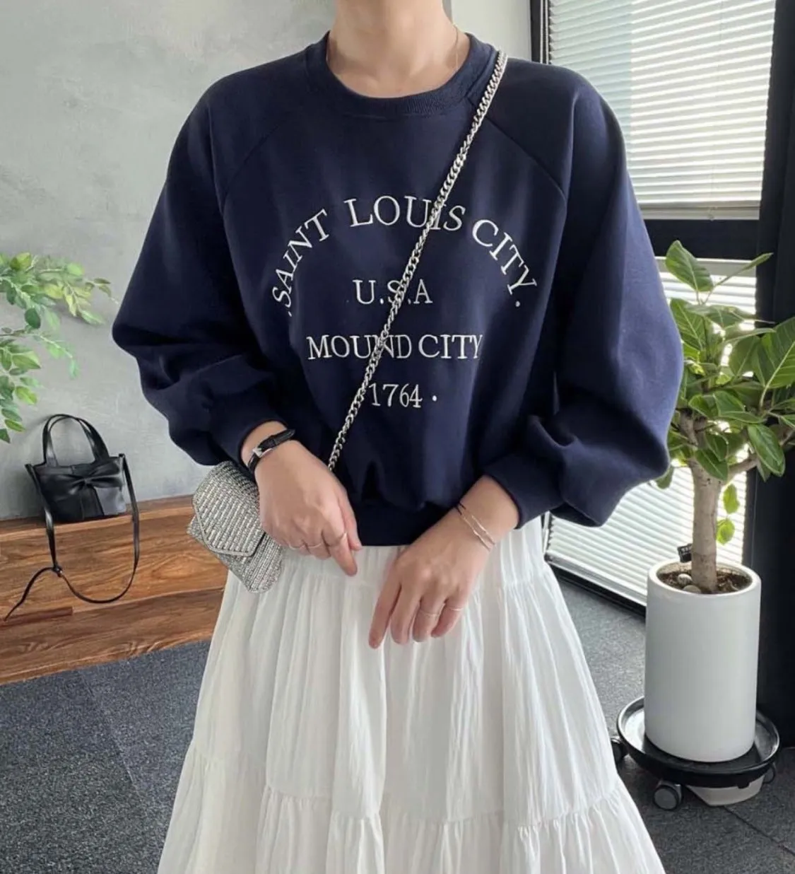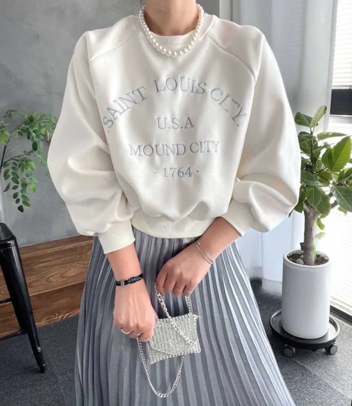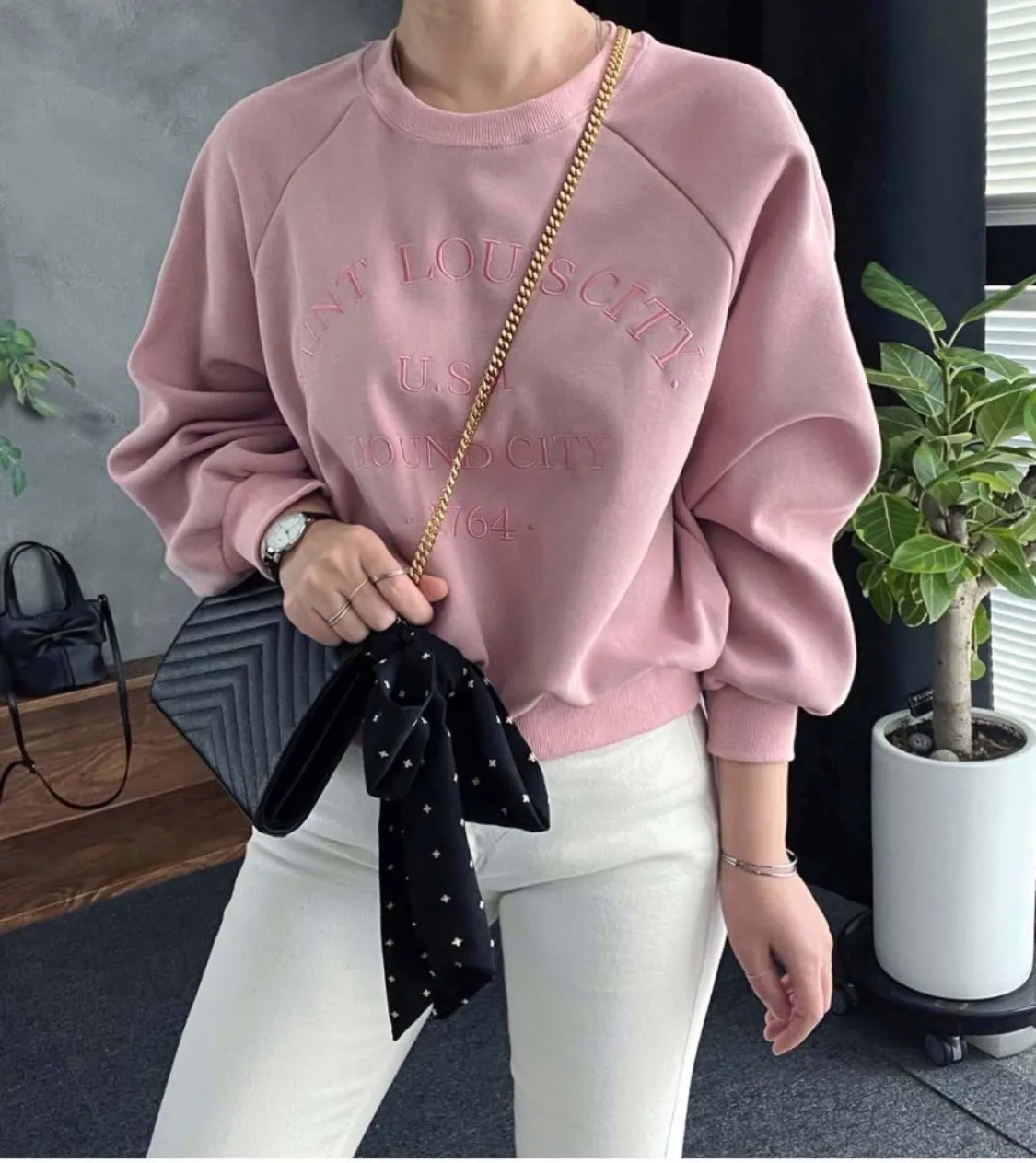 【優雅日常】刺繡英文USA落肩縫線上衣