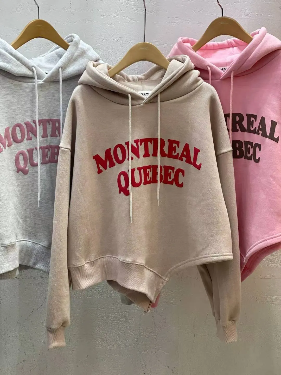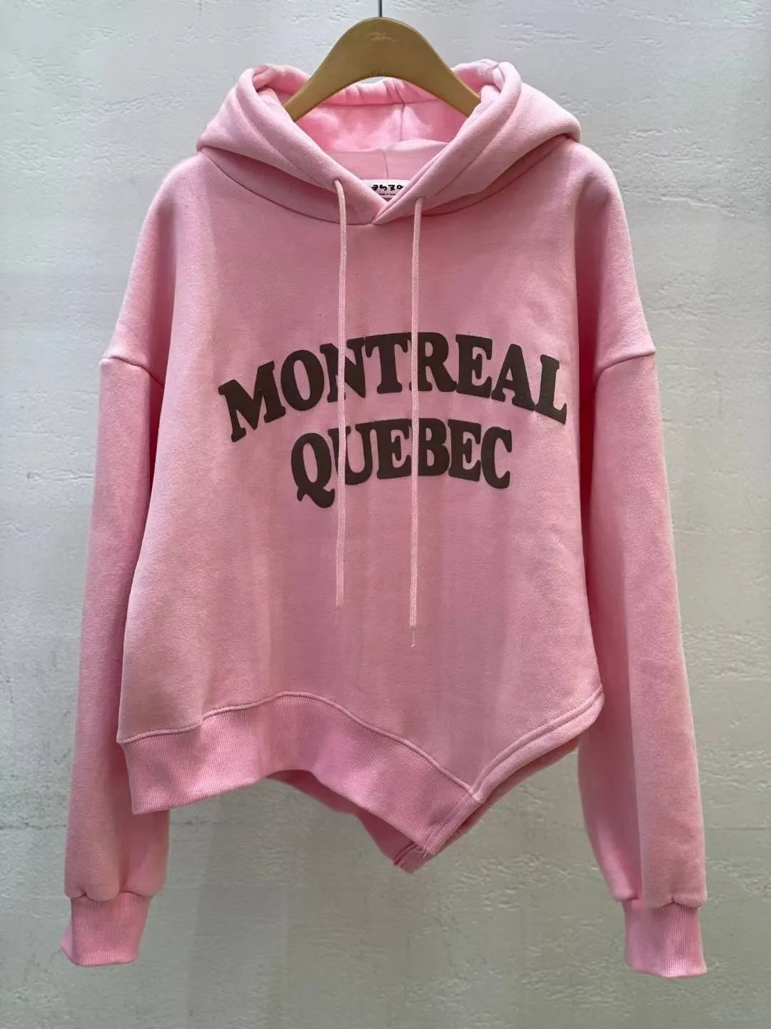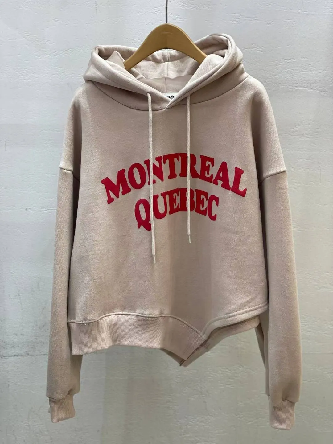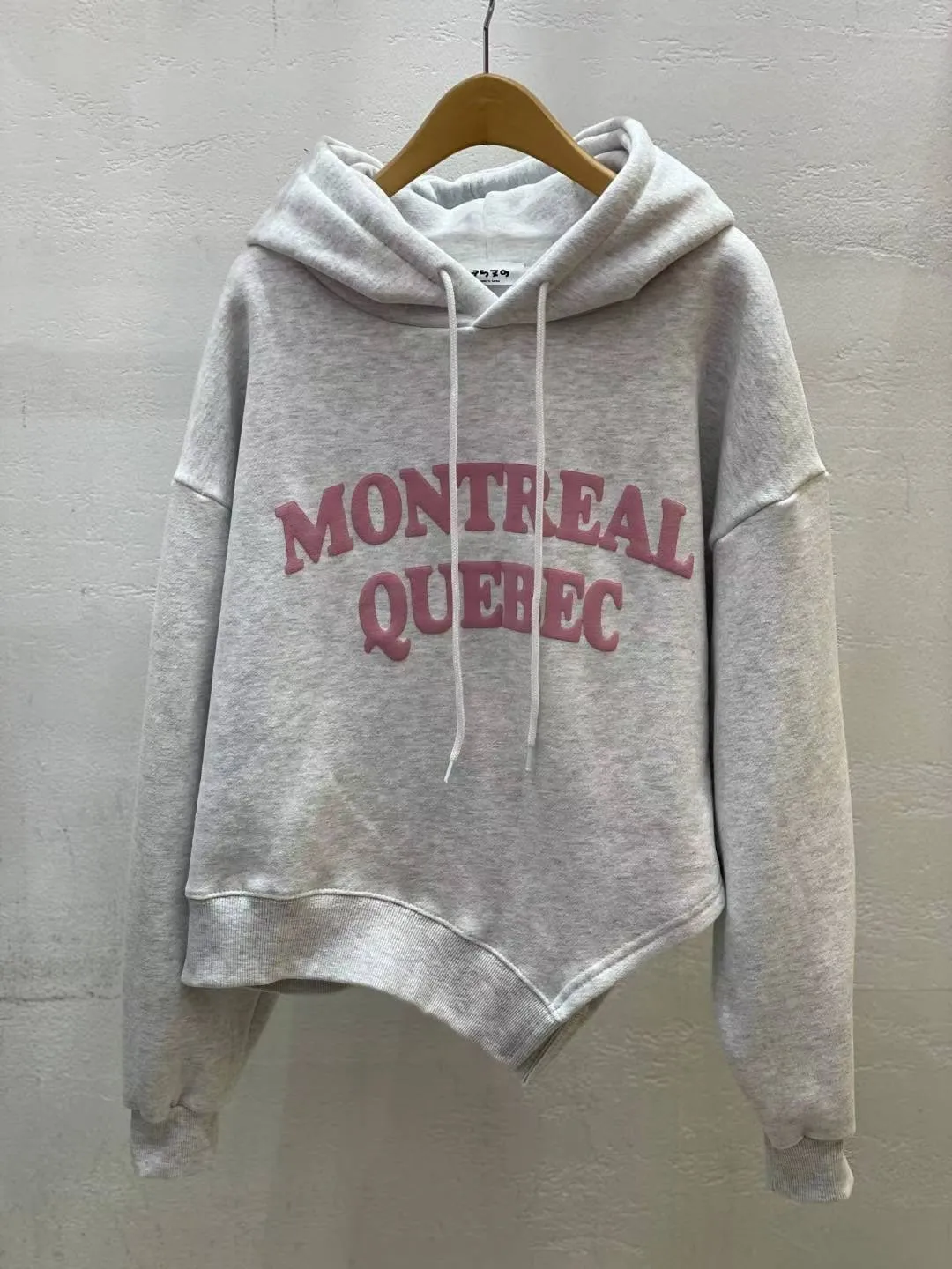 韓國製🇰🇷立體發泡英文不規則下擺刷毛連帽上衣