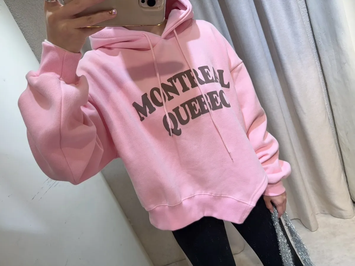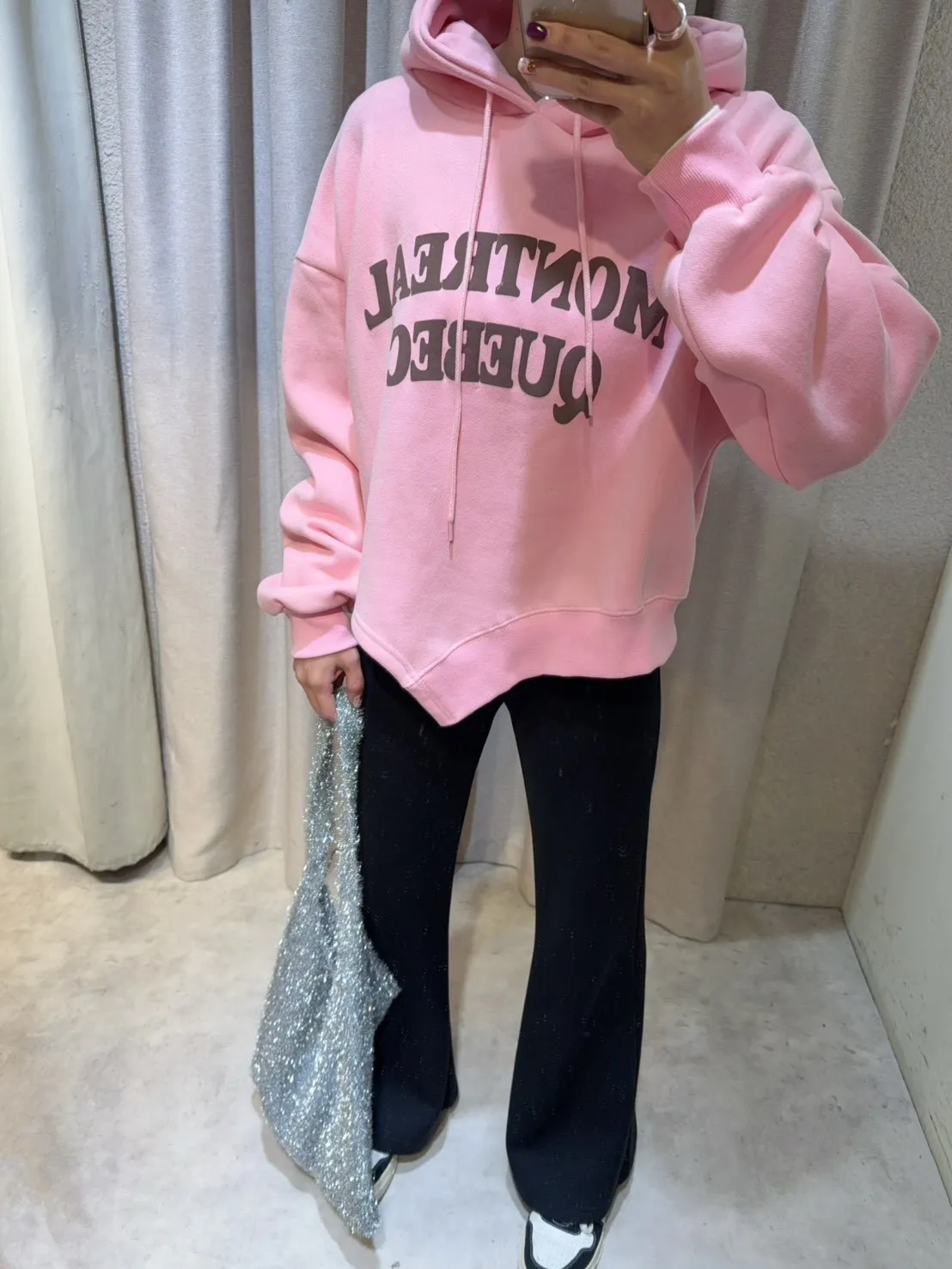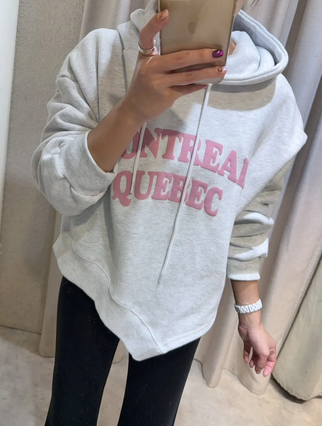 韓國製🇰🇷立體發泡英文不規則下擺刷毛連帽上衣