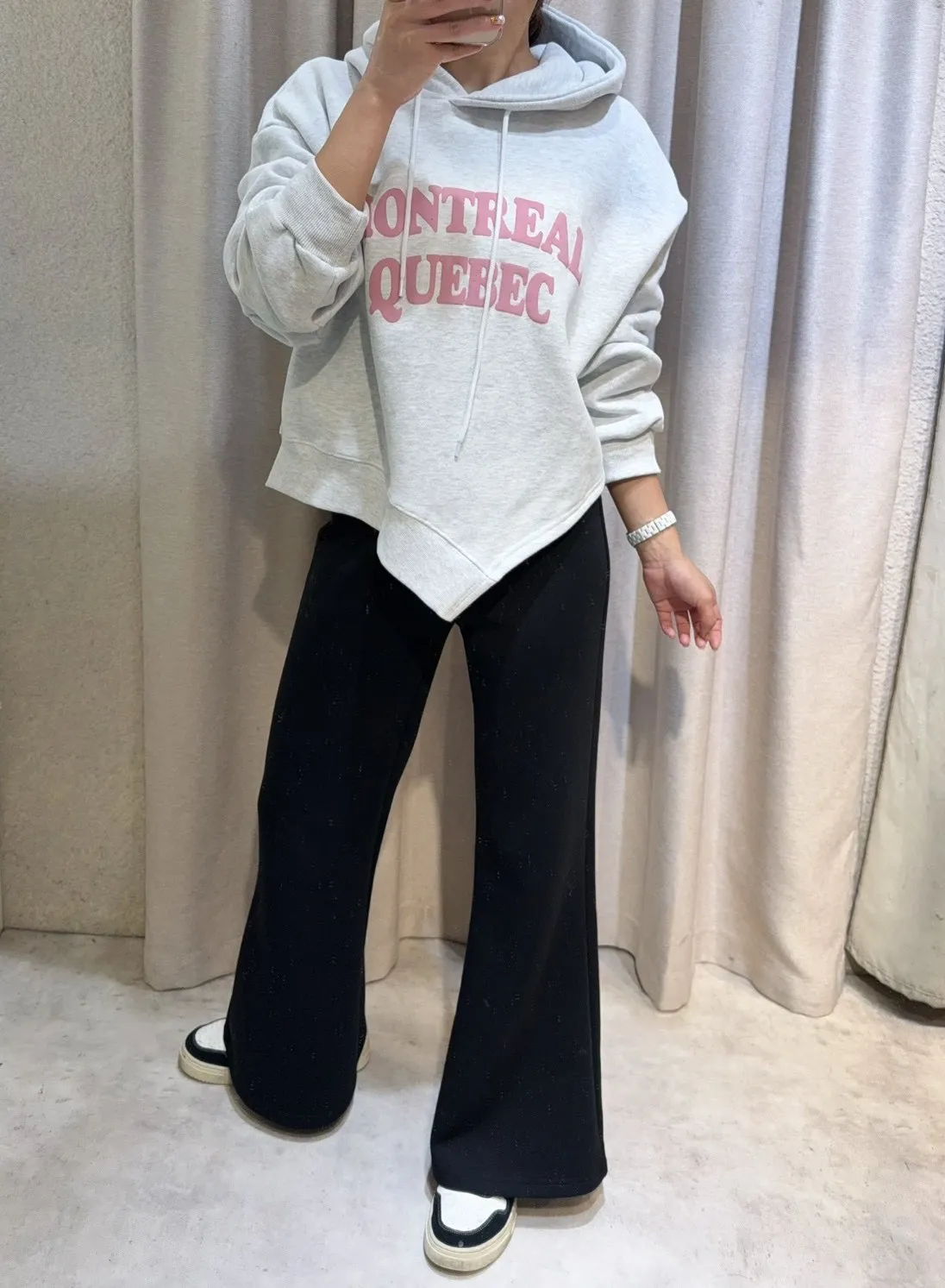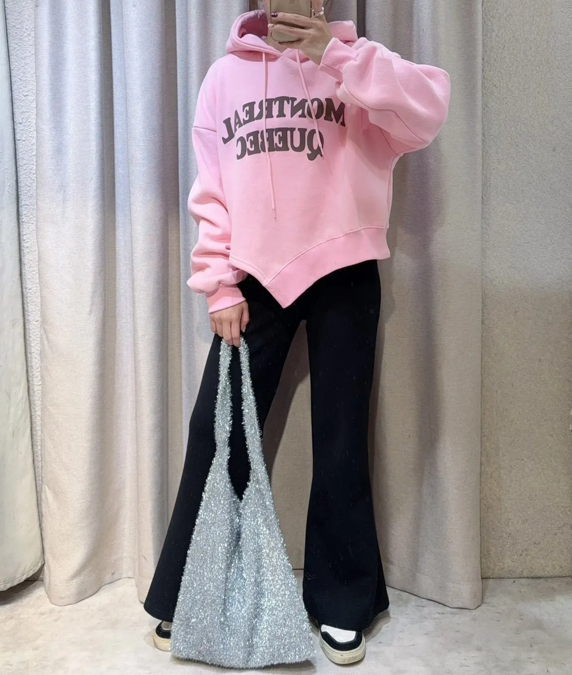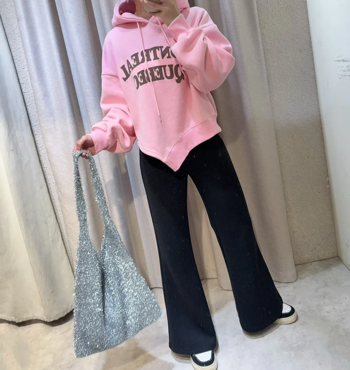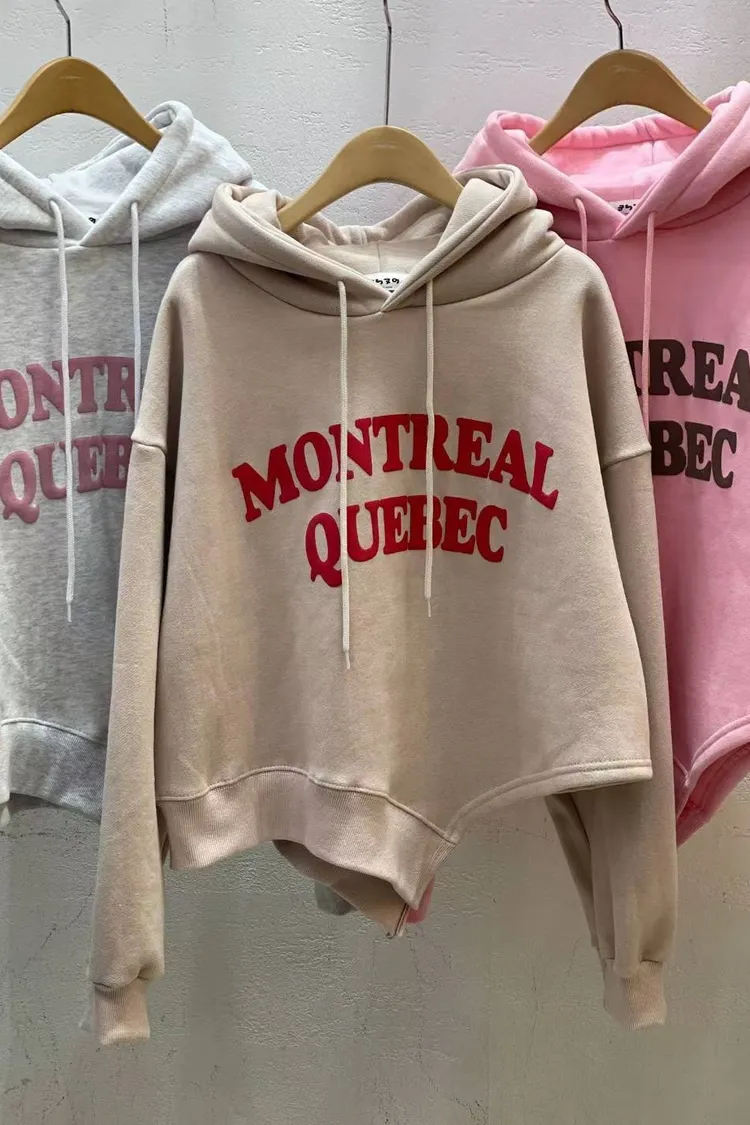 韓國製🇰🇷立體發泡英文不規則下擺刷毛連帽上衣
