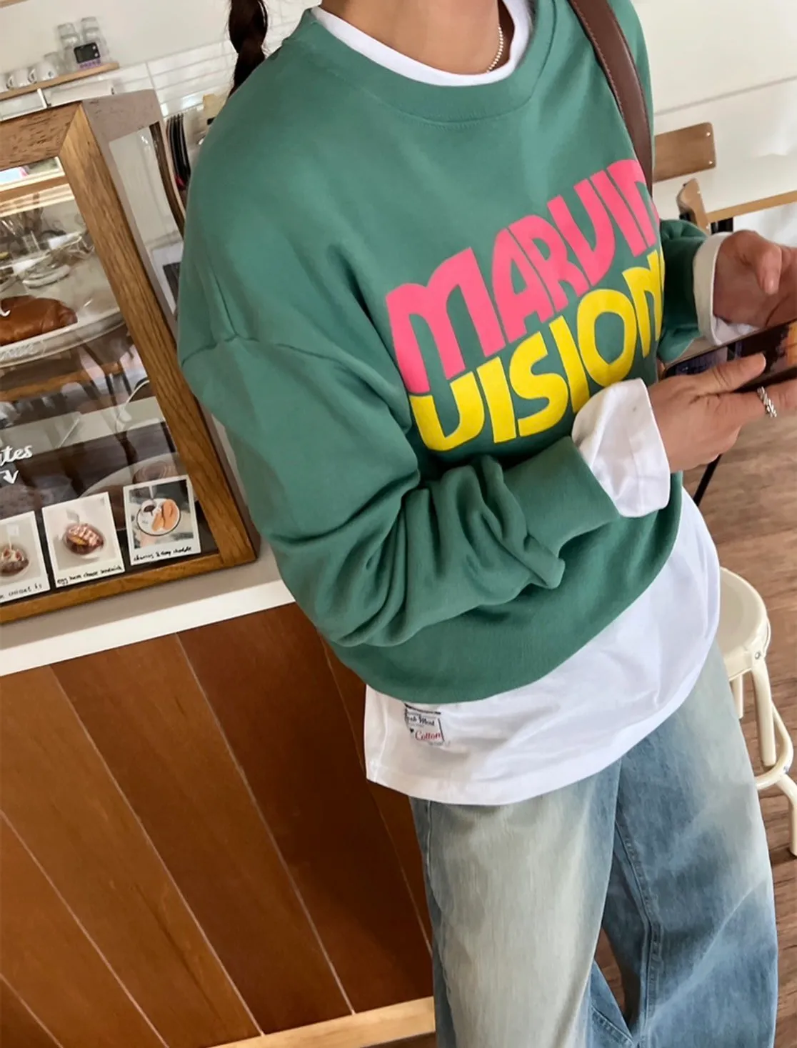 韓國製🇰🇷雙色英文亮眼大學上衣