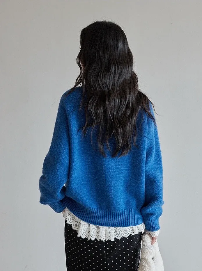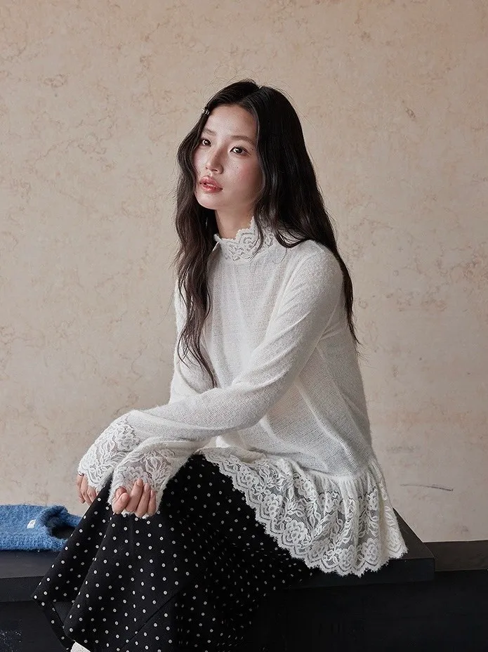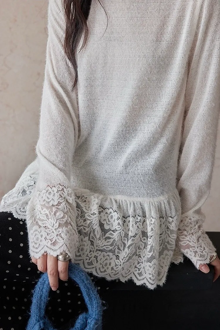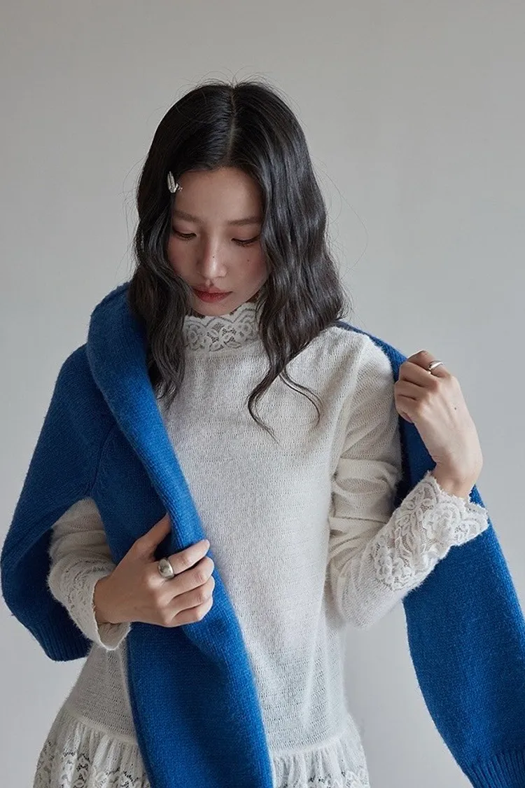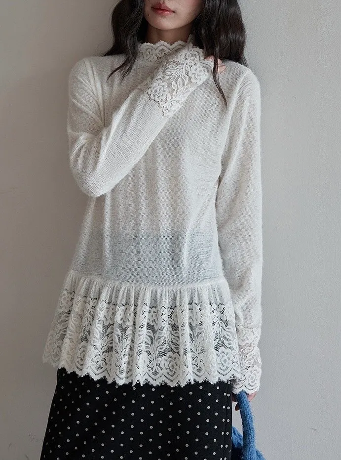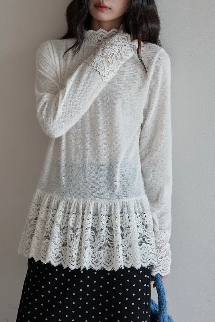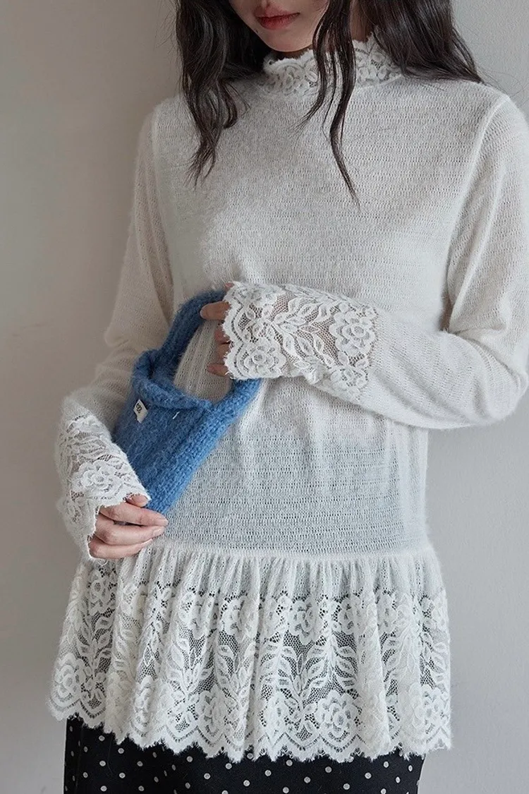 【柔光蕾領】重工蕾絲高領內搭針織衫
