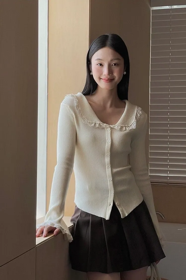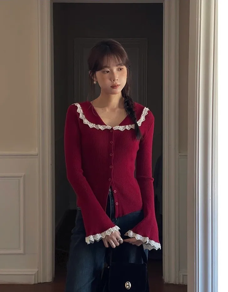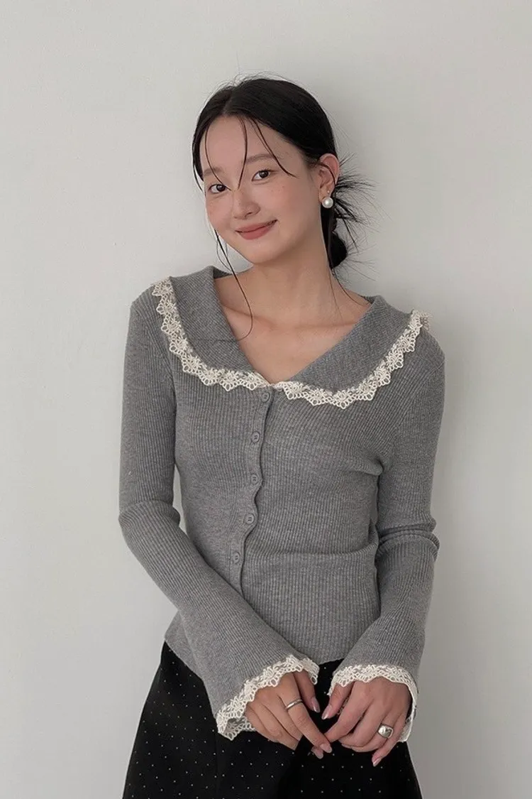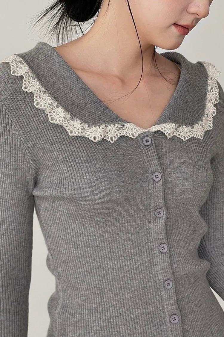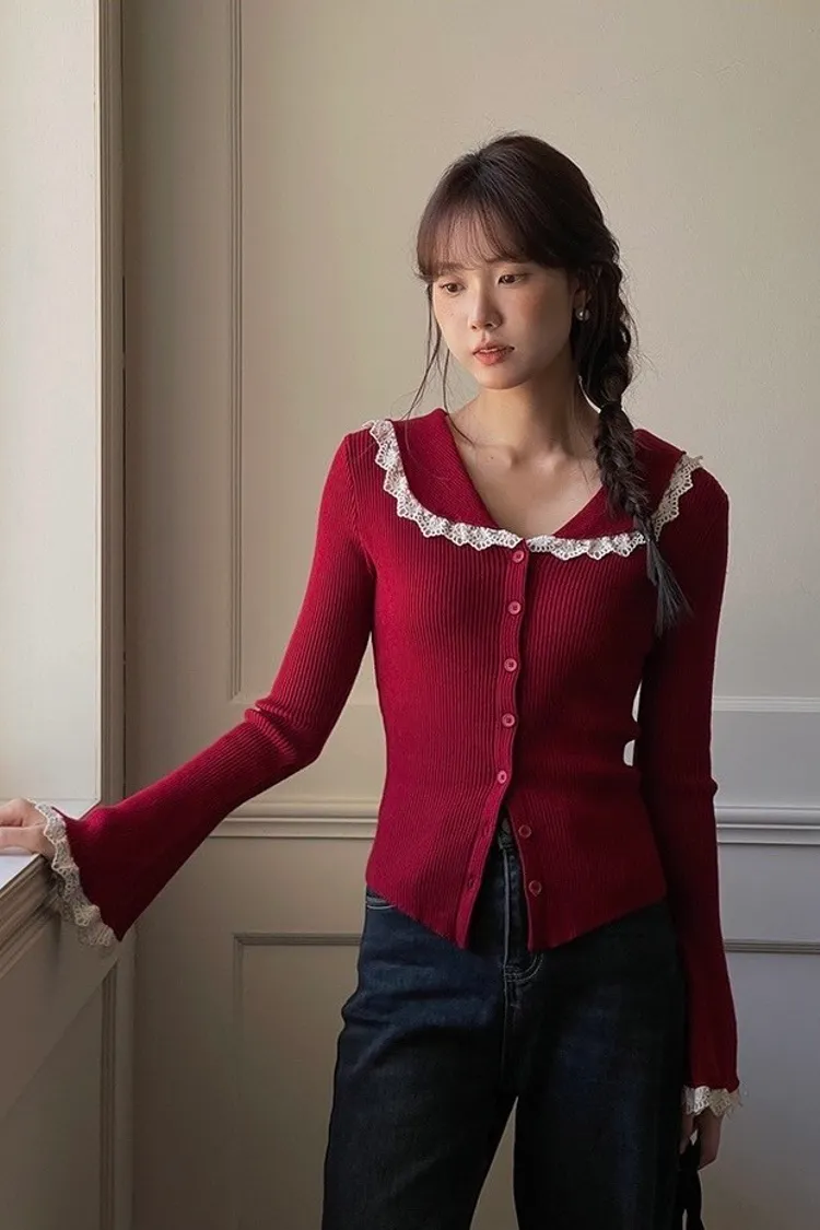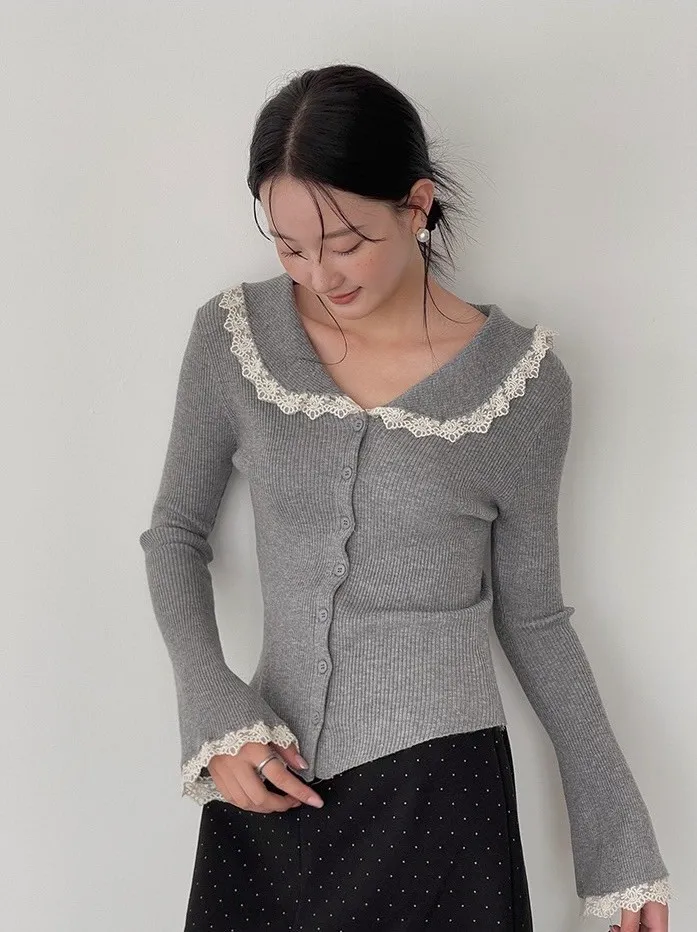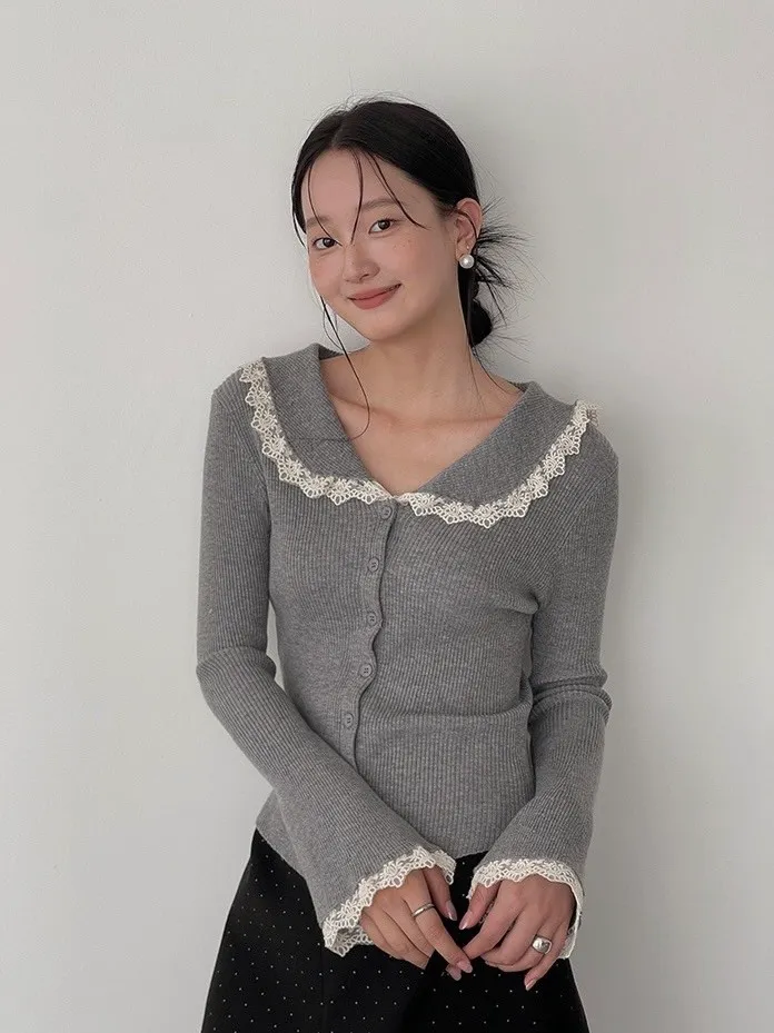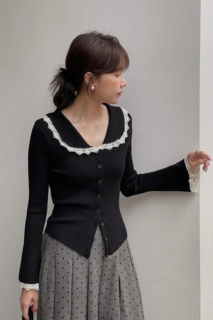 【月光鳴奏曲 重工拼接針織4色】歌銘法式復古蕾絲