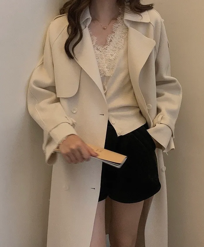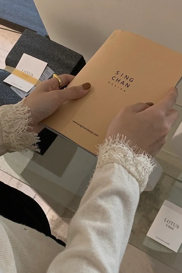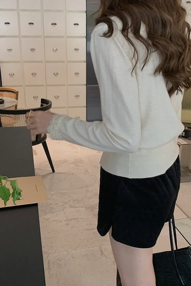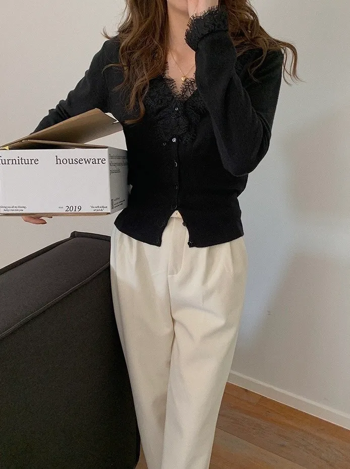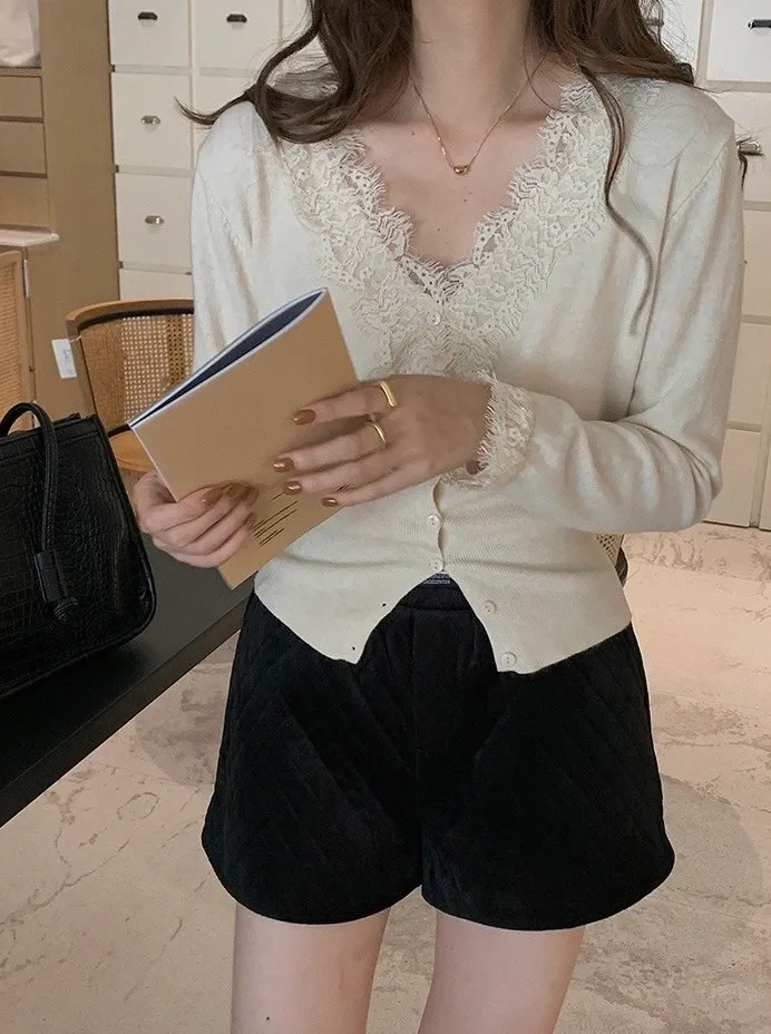 【雅蕾V織】設計感蕾絲針織V領修身氣質上衣