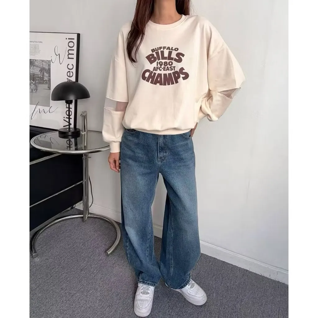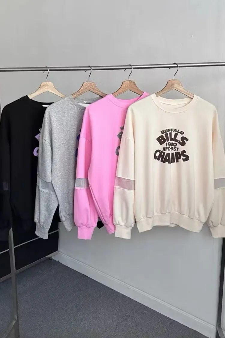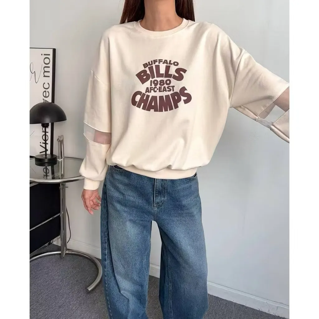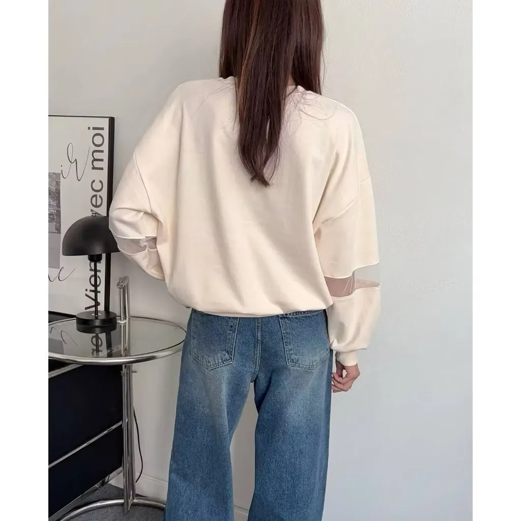 韓國製🇰🇷設計款拼接網紗手袖字母tee