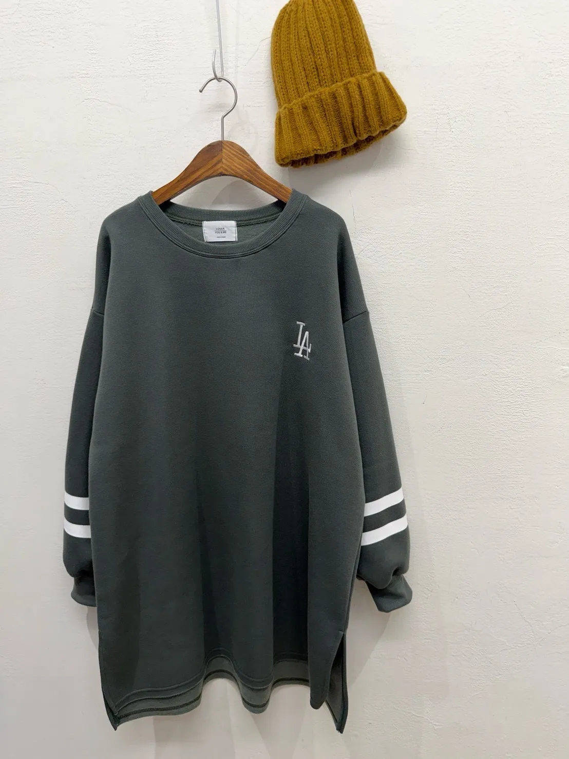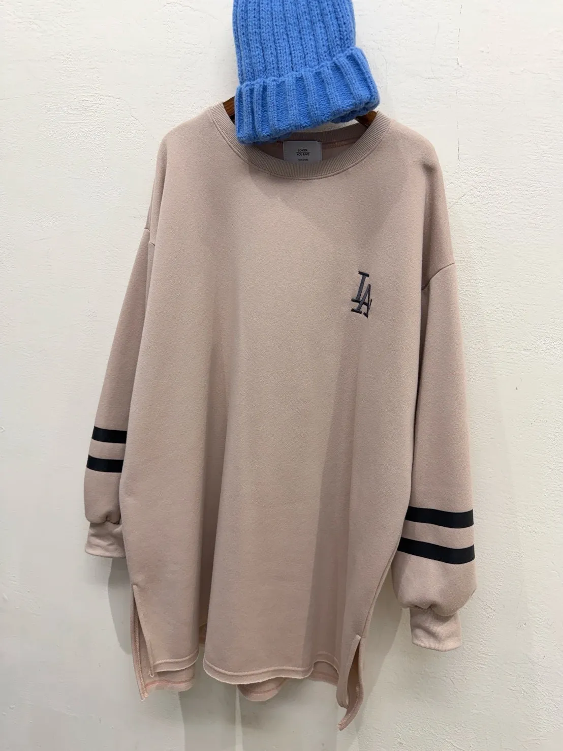 韓國製🇰🇷暖暖刷毛長版電繡大學tee