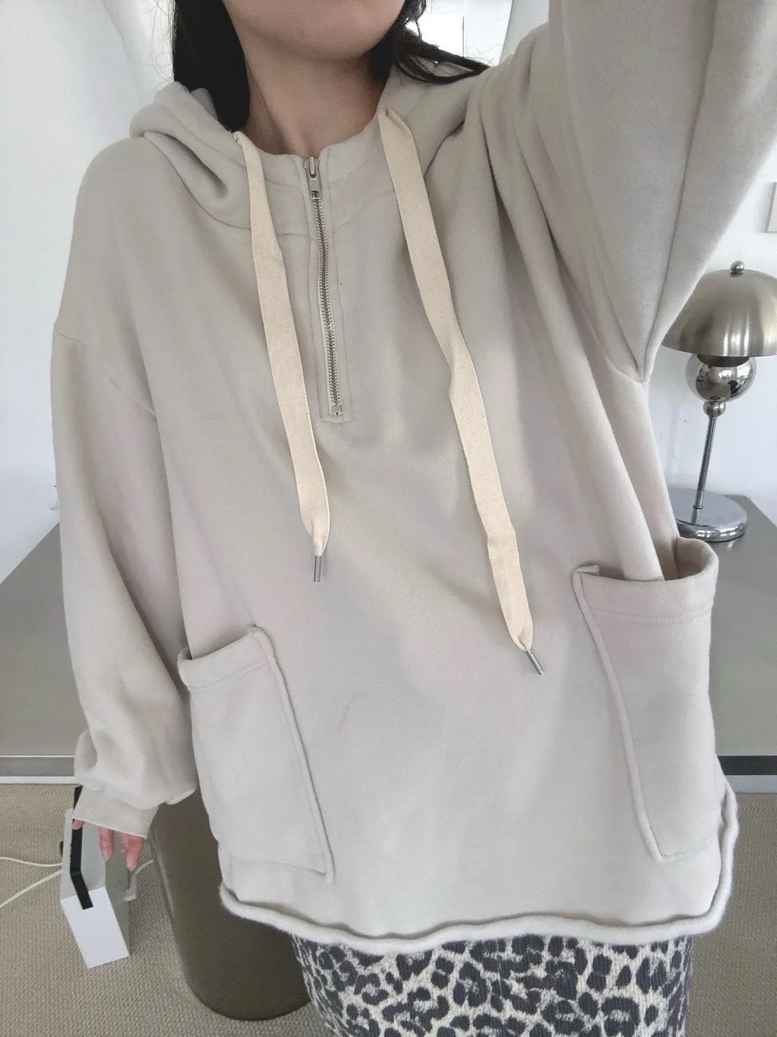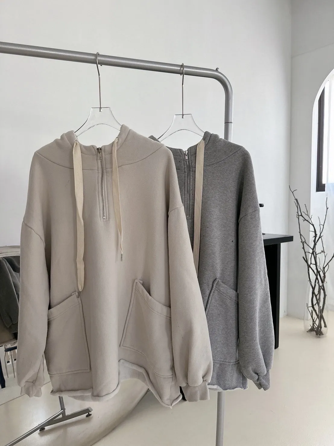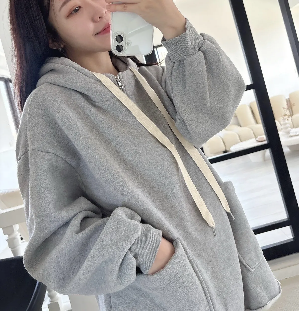 韓國製🇰🇷萌暖拉鍊厚刷毛大口袋帽tee