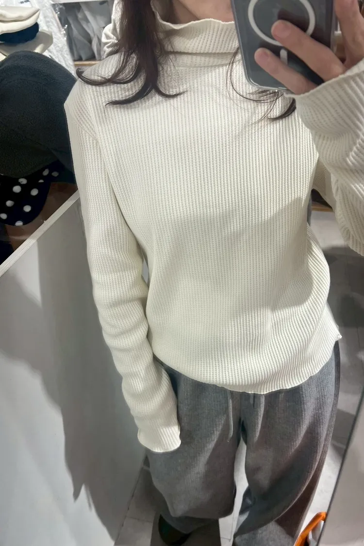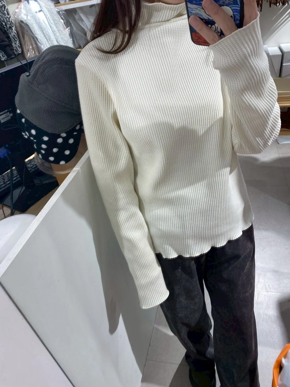 韓國製🇰🇷鬆餅格寬立領氣質上衣