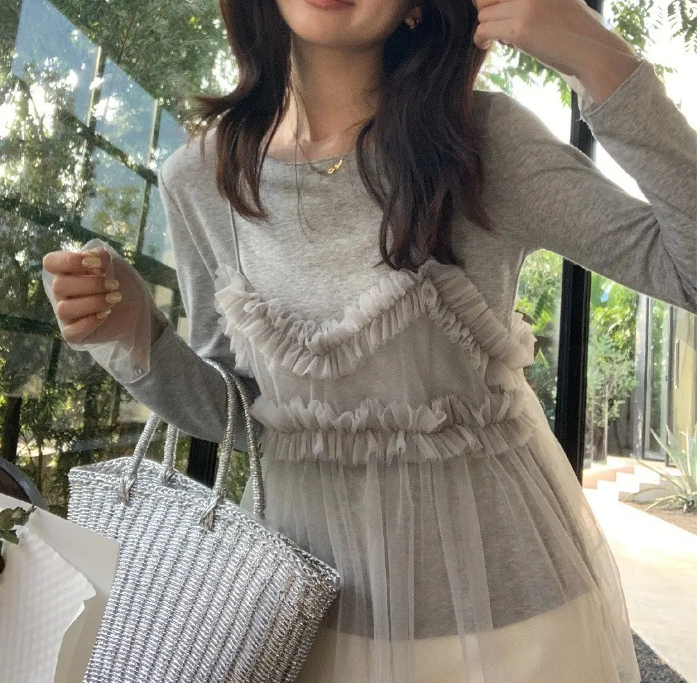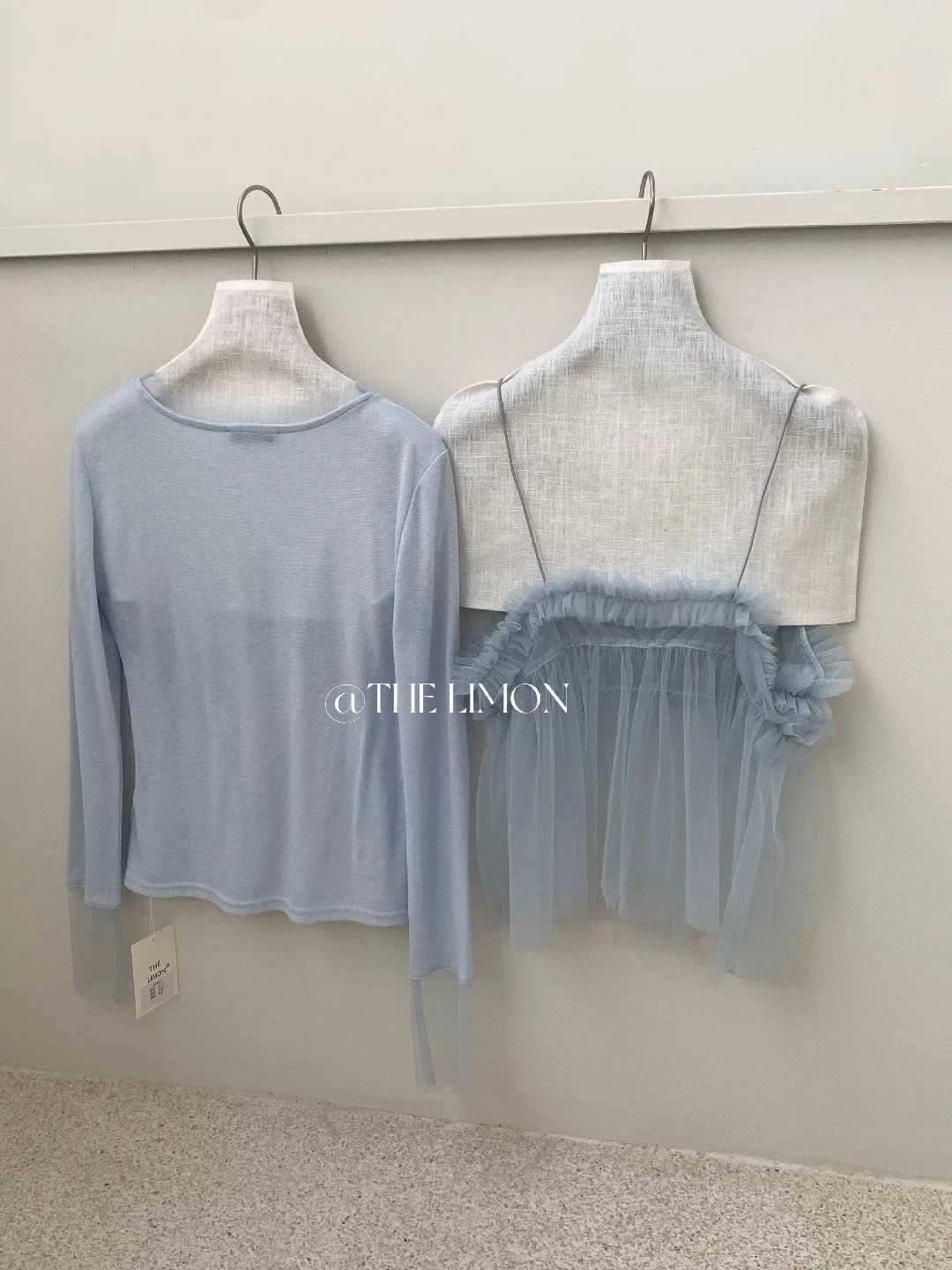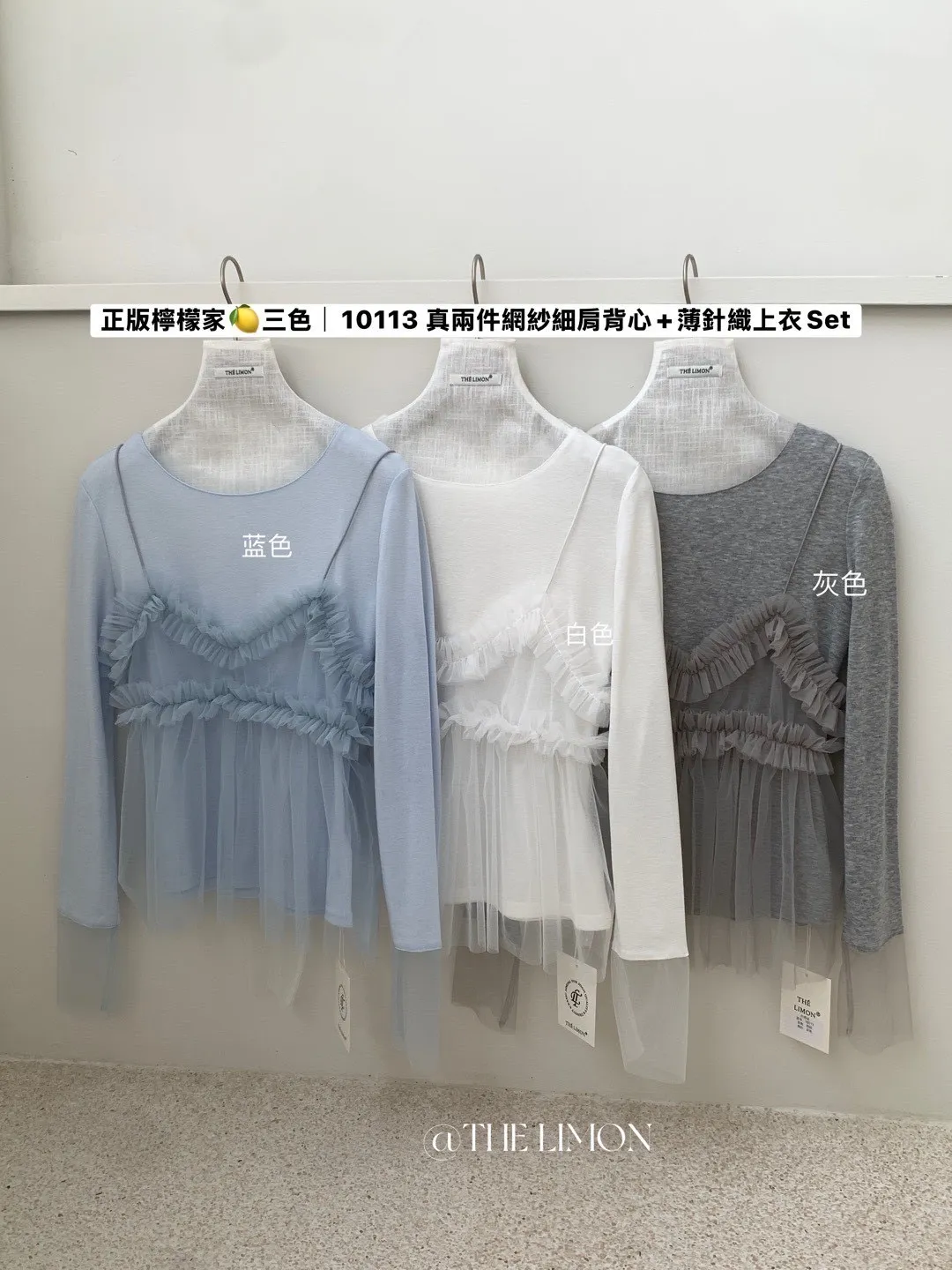 𝐓𝐇𝐄 𝐋𝐈𝐌𝐎𝐍檸檬家🍋真兩件網紗細肩背心+薄針織上衣 Set