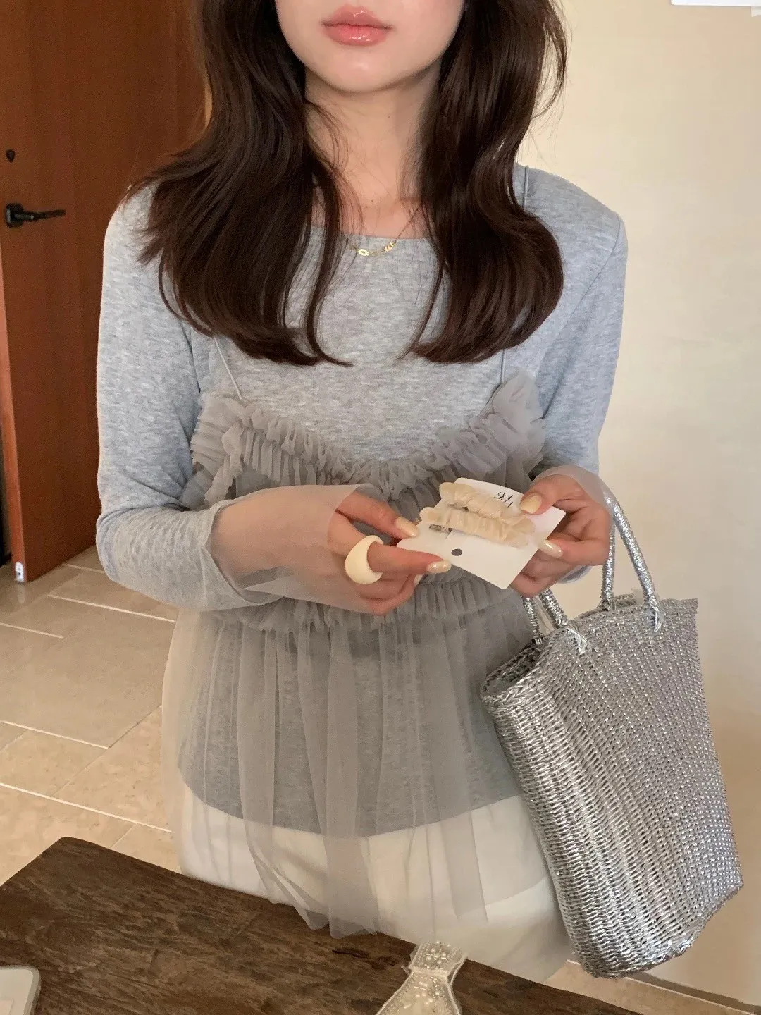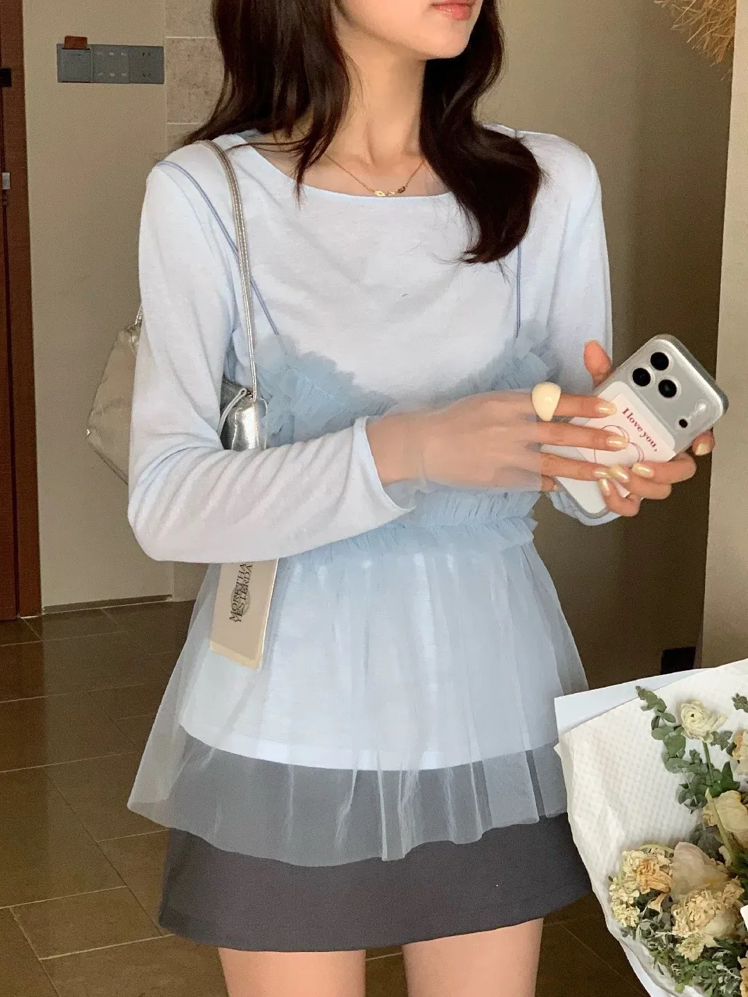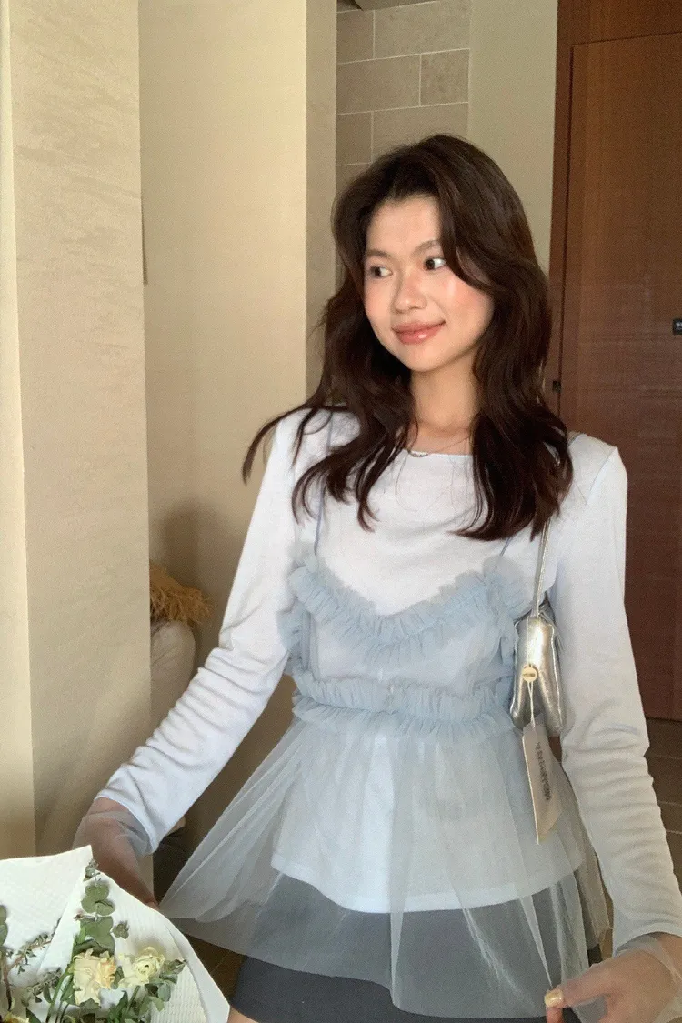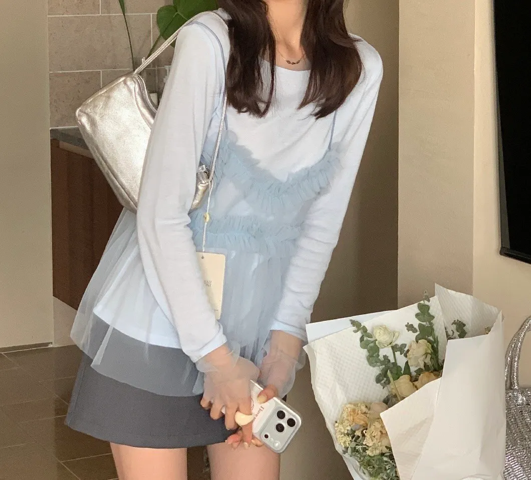 𝐓𝐇𝐄 𝐋𝐈𝐌𝐎𝐍檸檬家🍋真兩件網紗細肩背心+薄針織上衣 Set