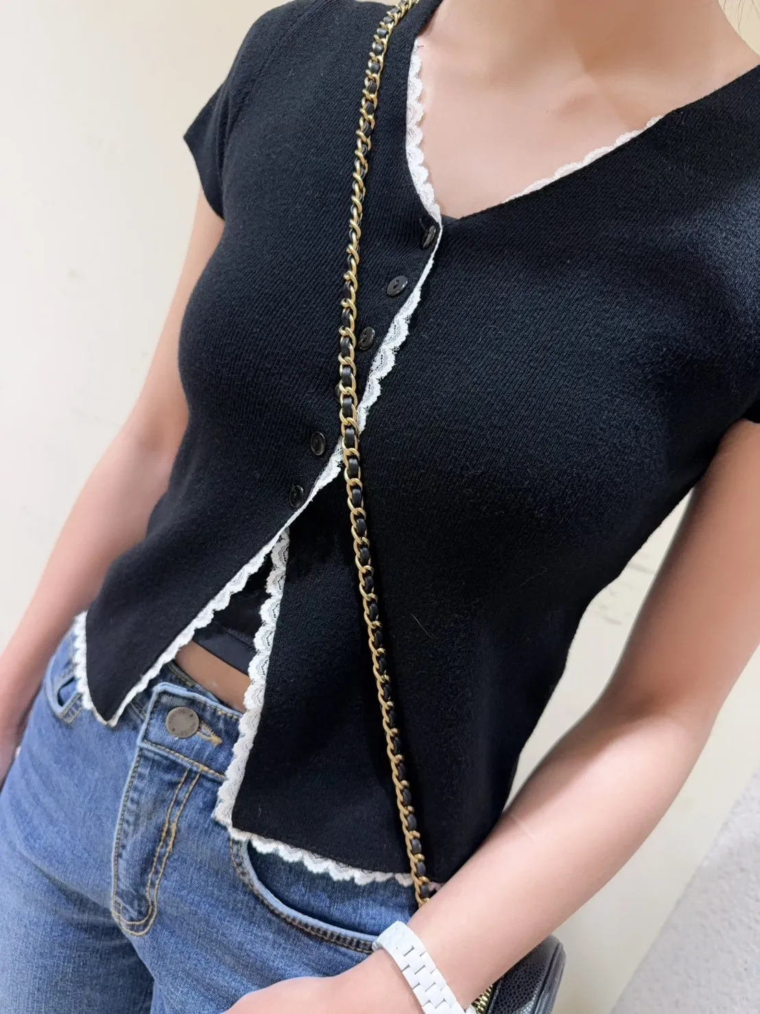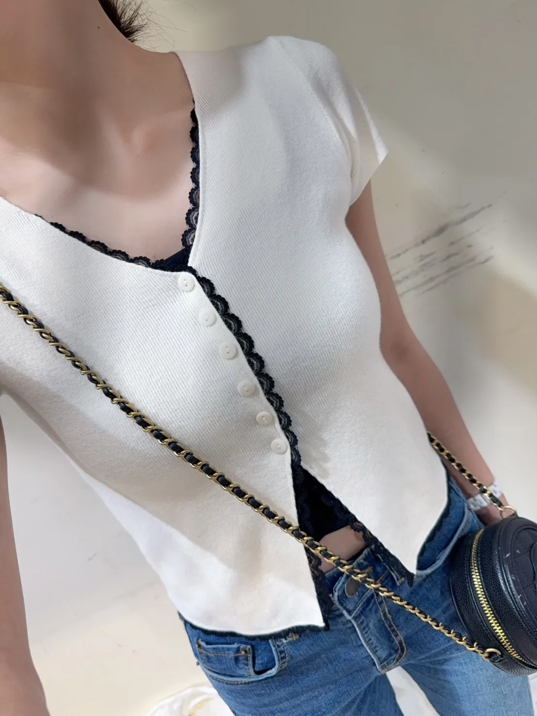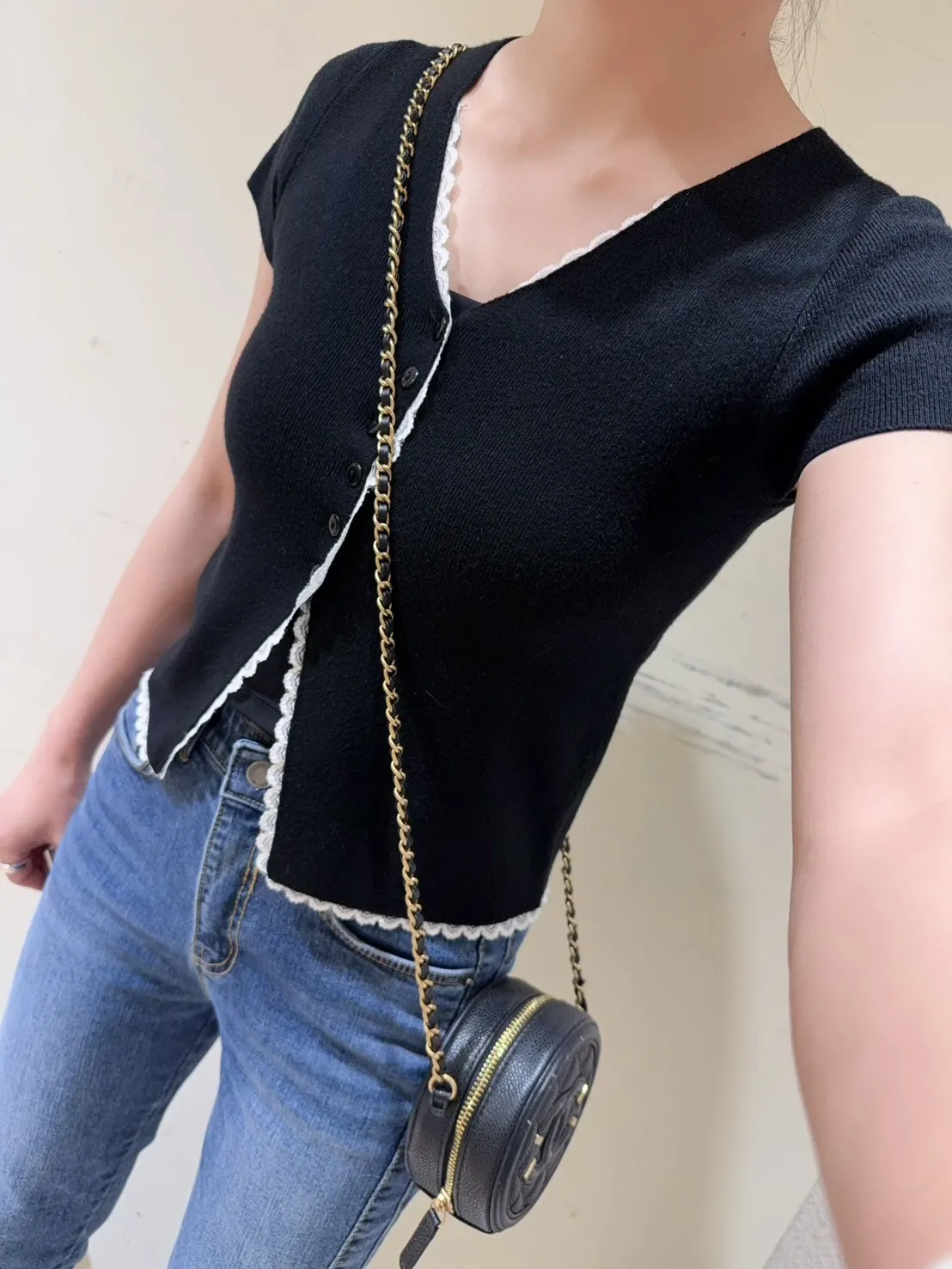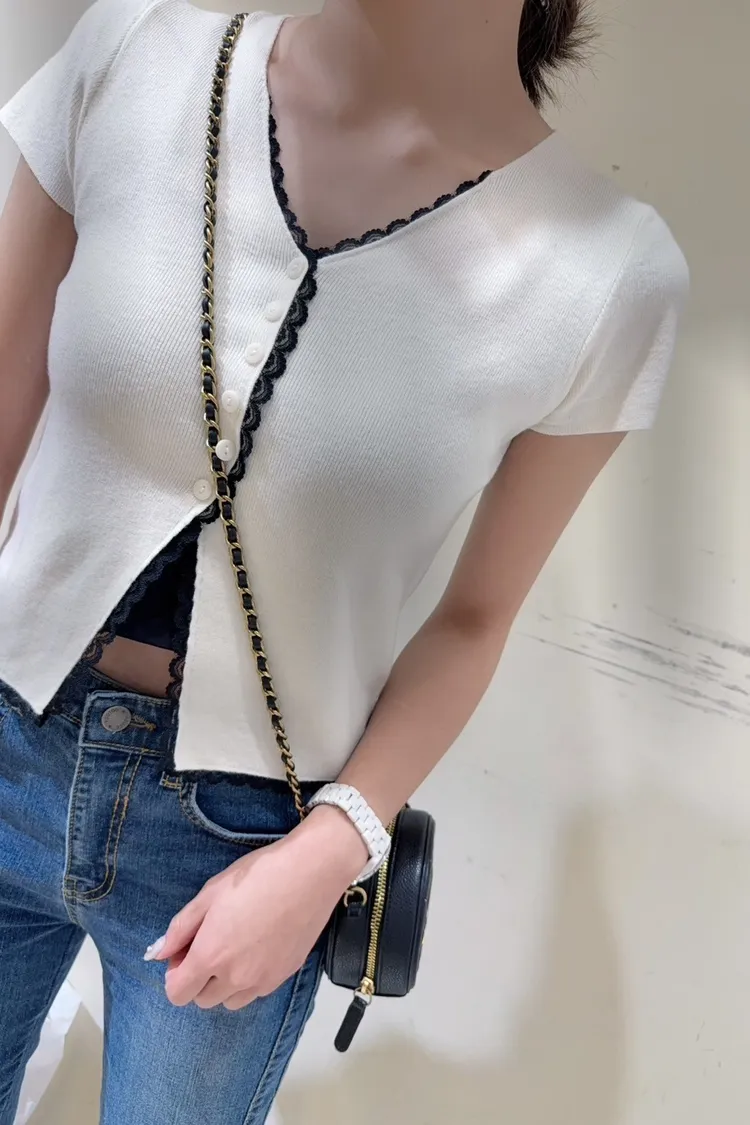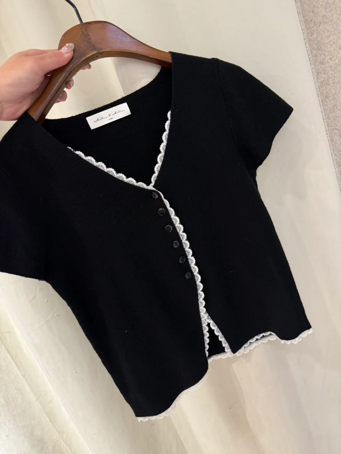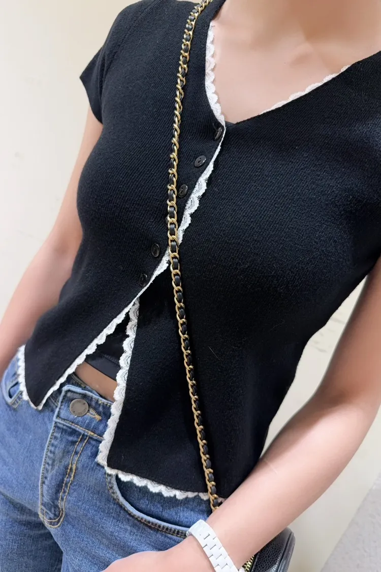 韓國製🇰🇷雙色微甜蕾絲日系針織排釦衫