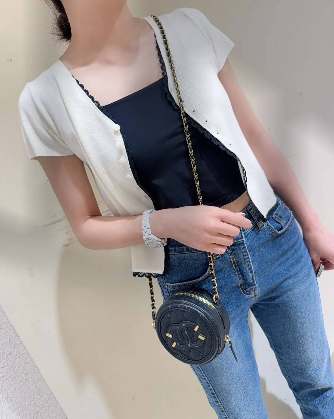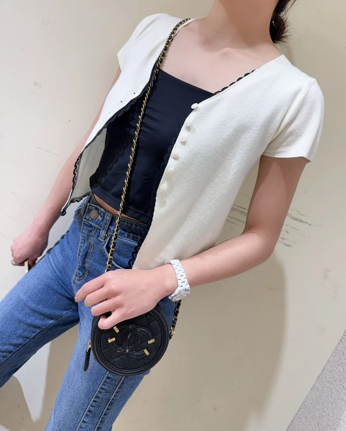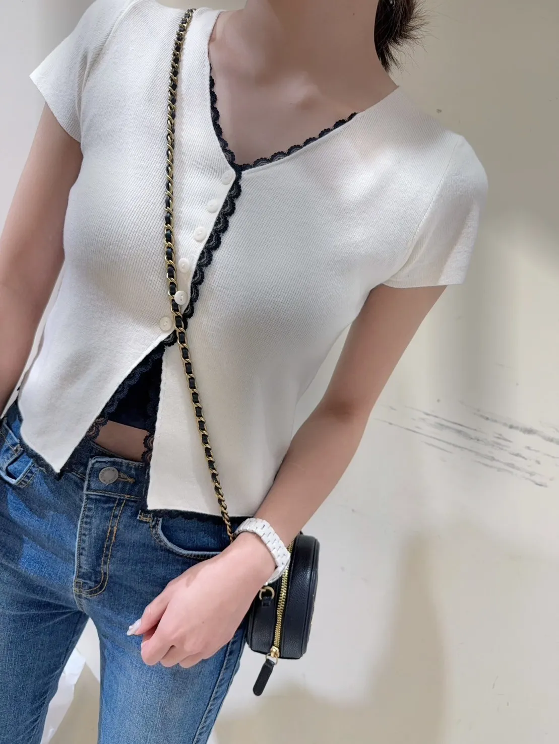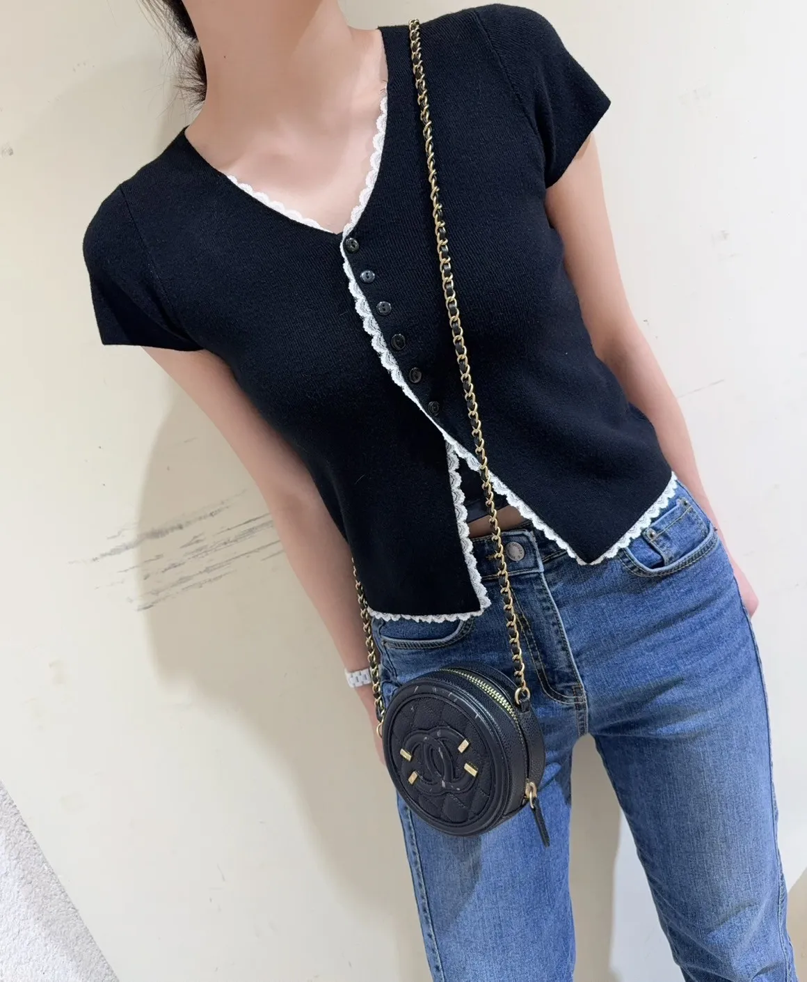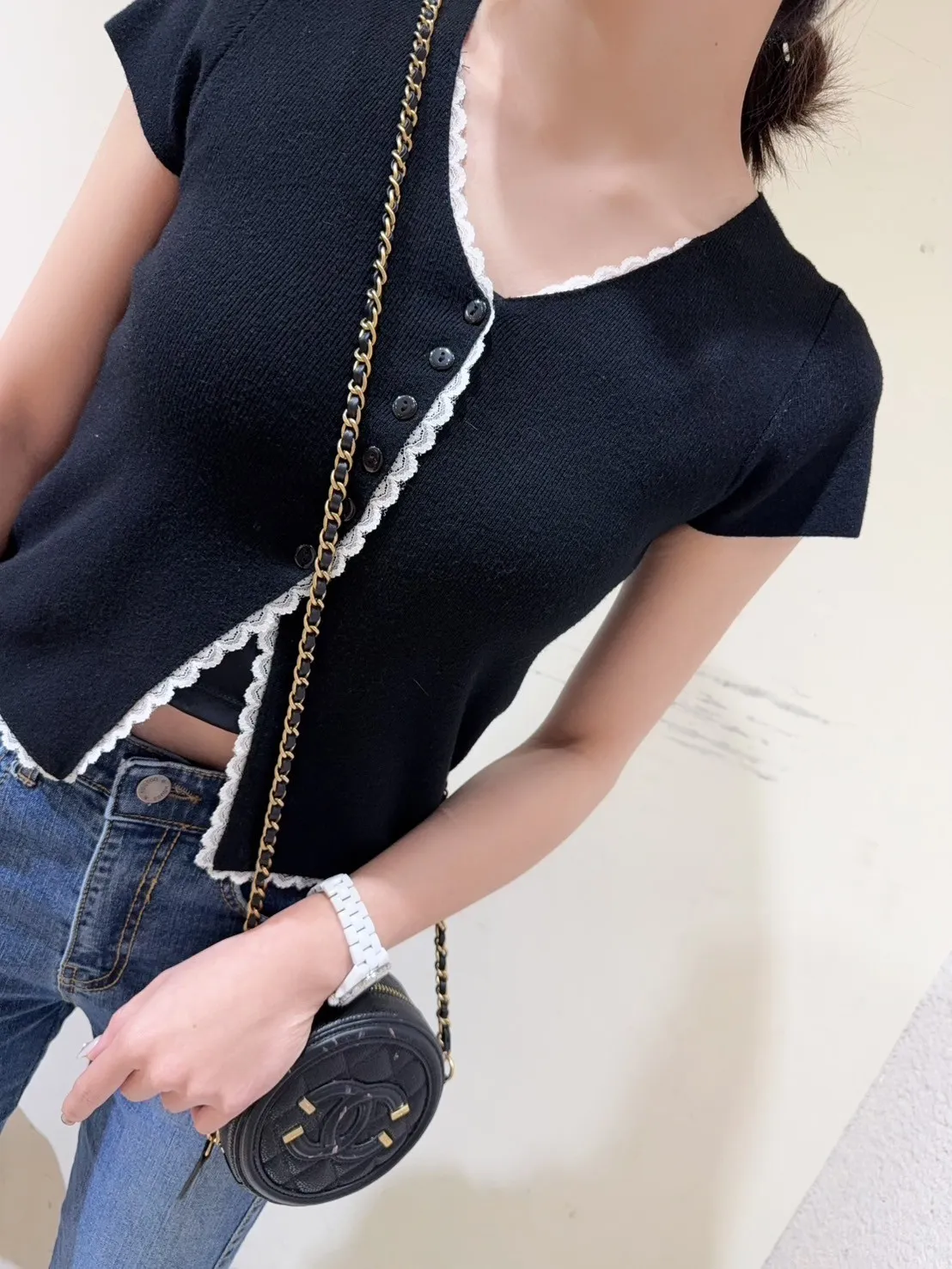 韓國製🇰🇷雙色微甜蕾絲日系針織排釦衫