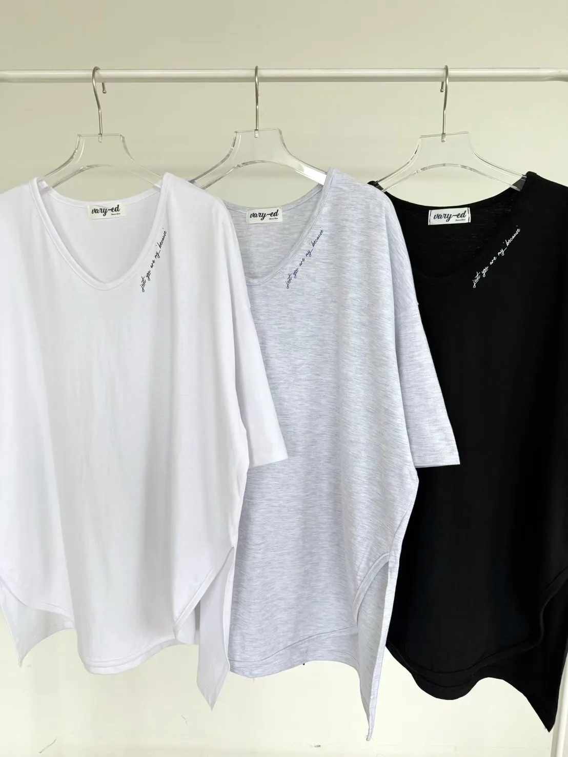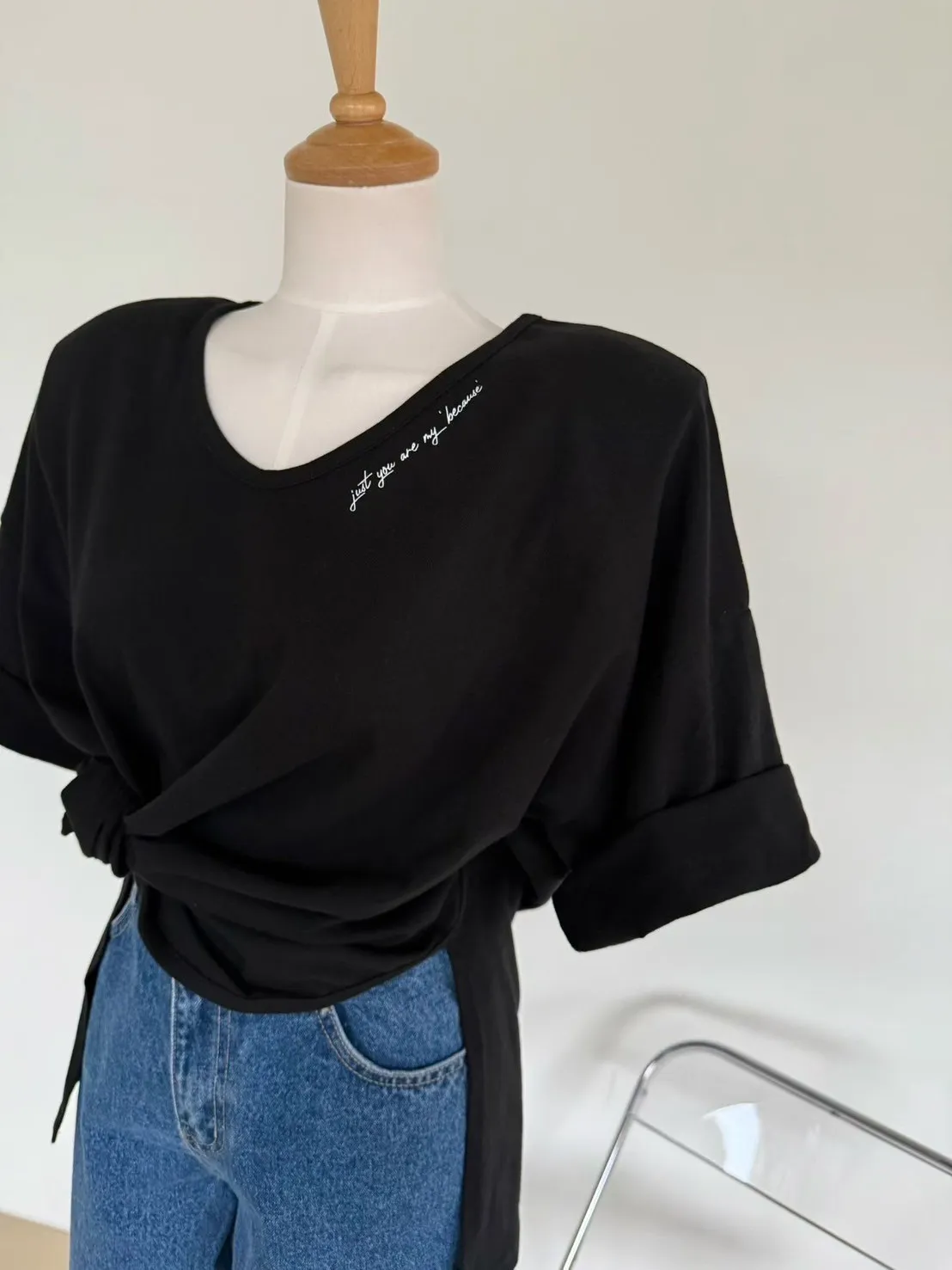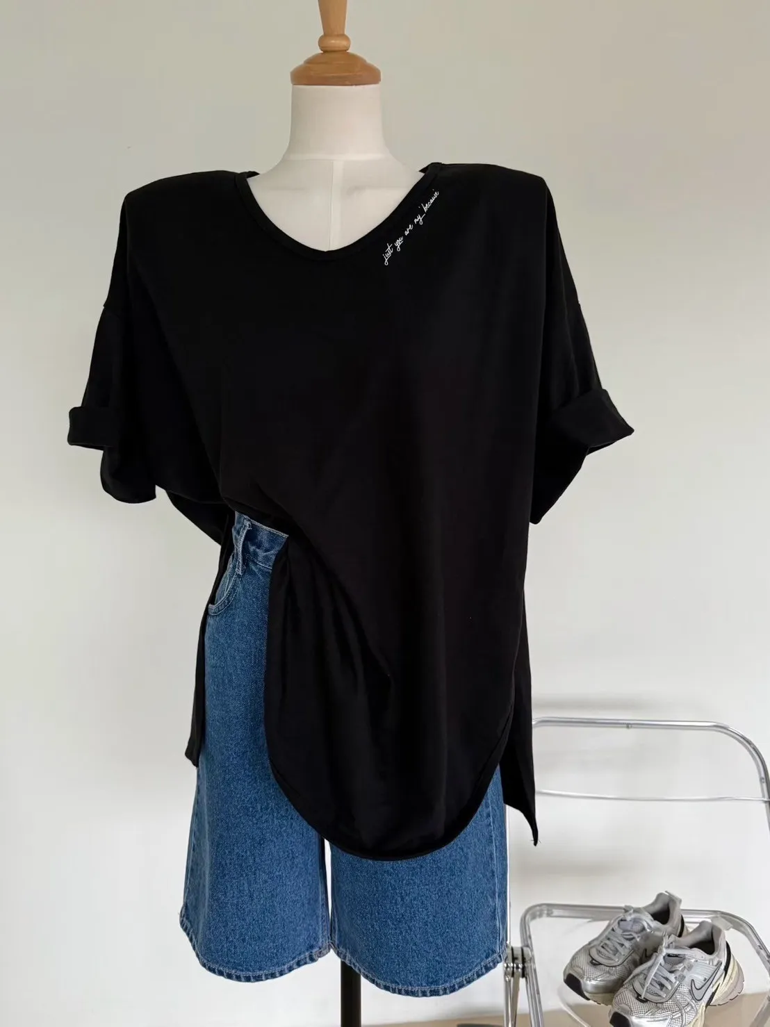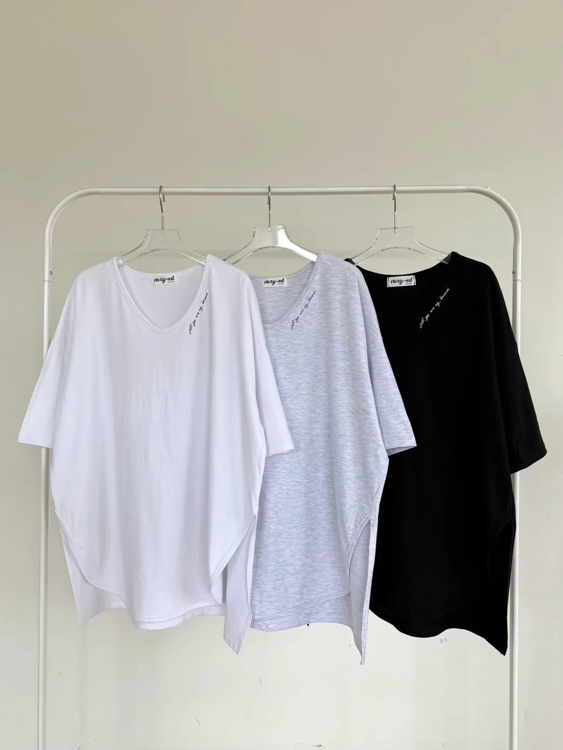 韓國製🇰🇷三色|領口英文不規則下擺純棉上衣