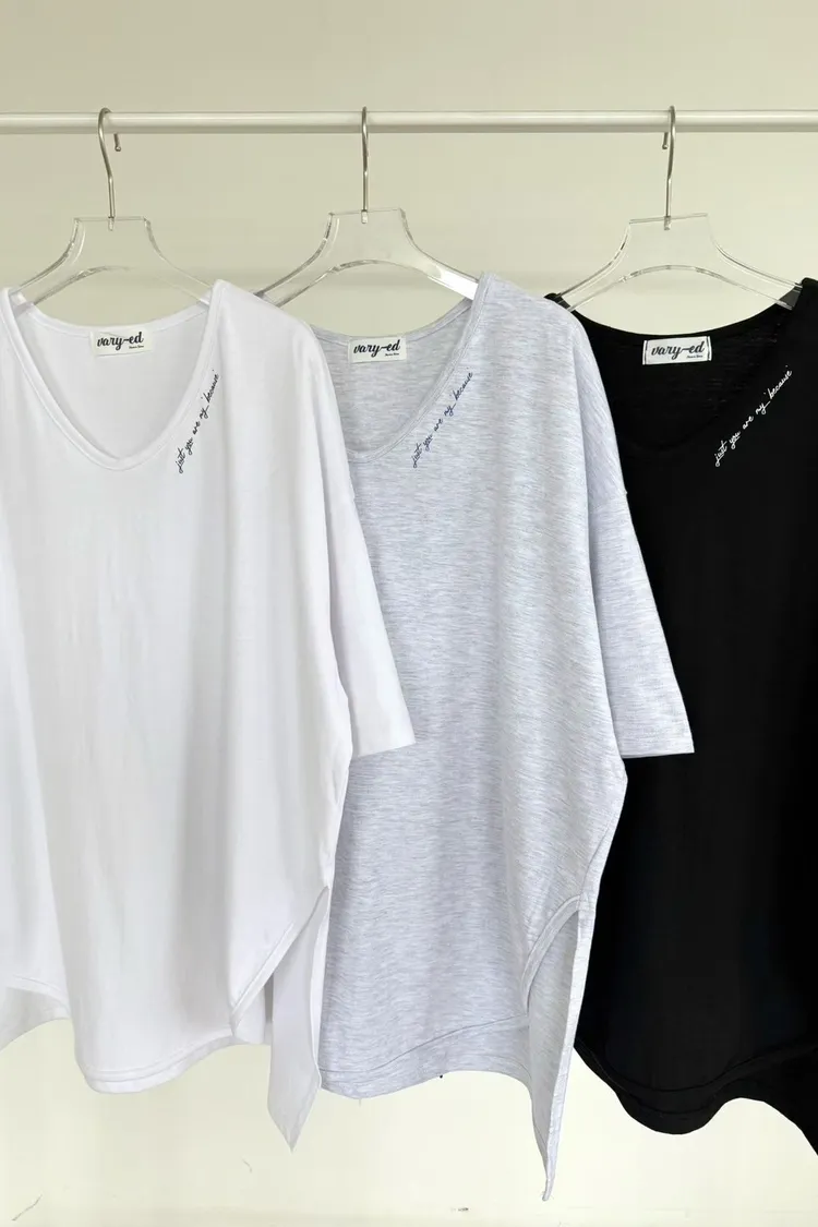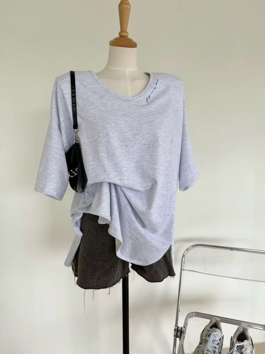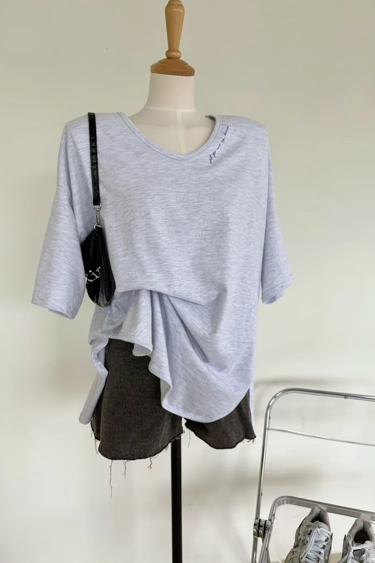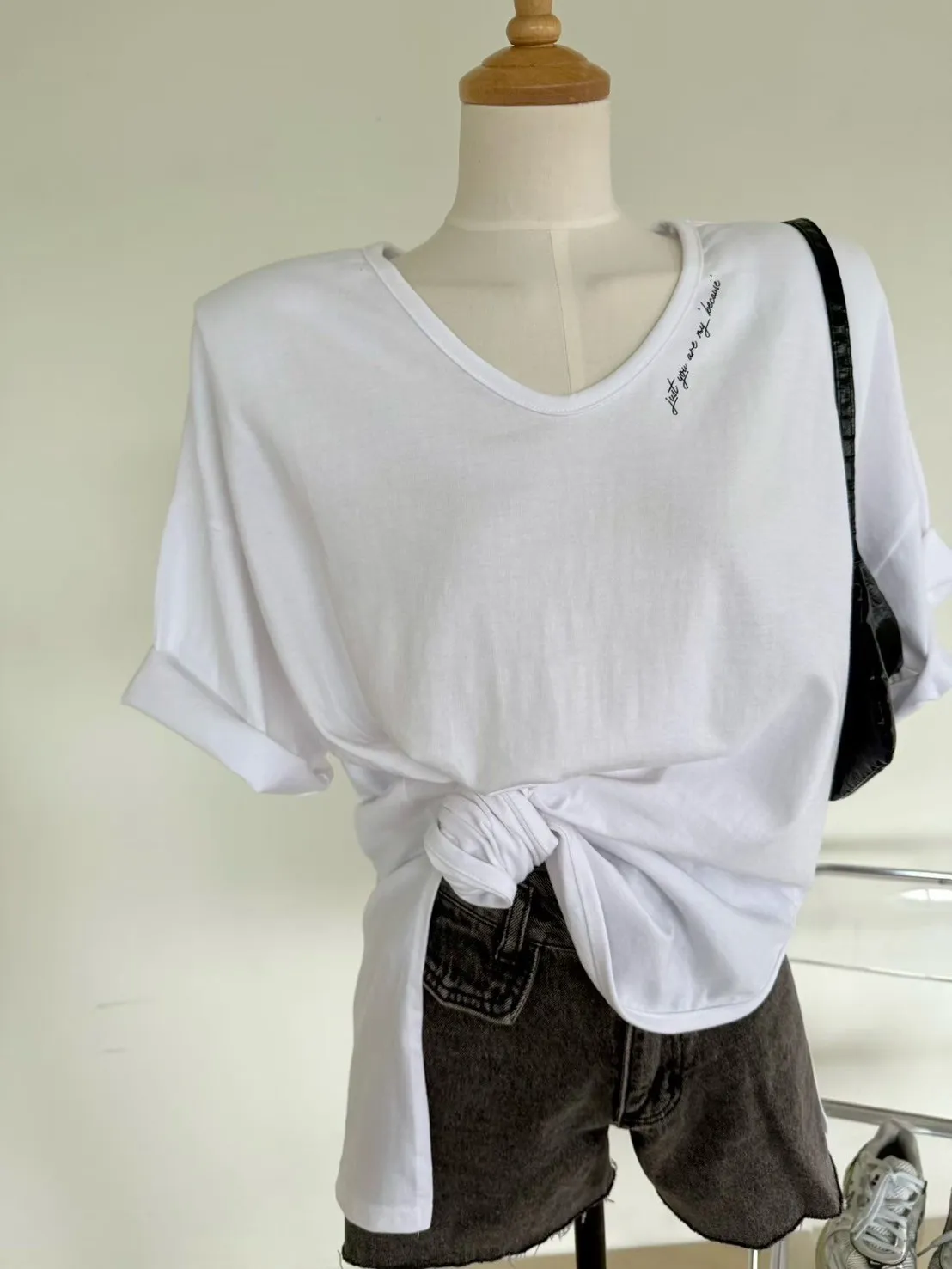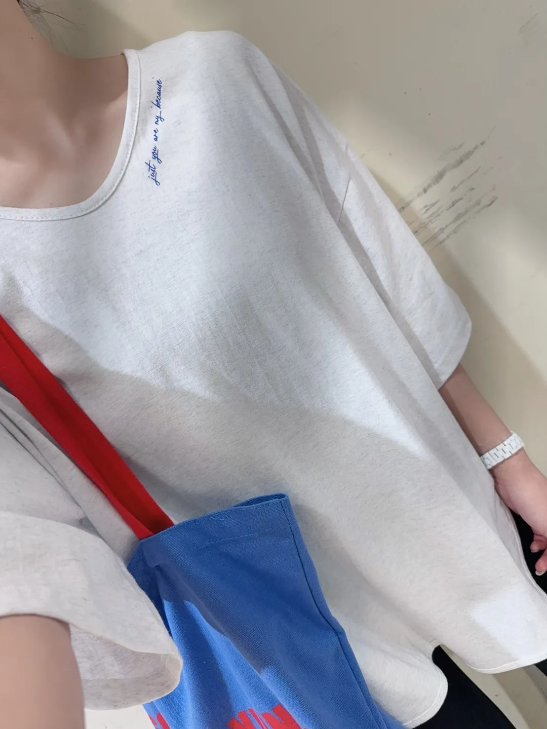 韓國製🇰🇷三色|領口英文不規則下擺純棉上衣
