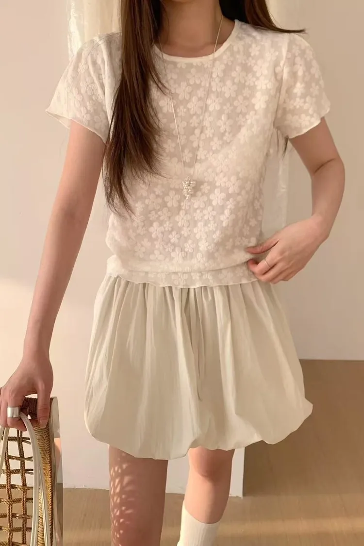 立體小花兩穿氣質短袖上衣🌼