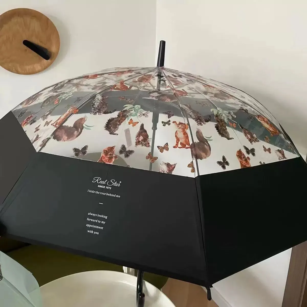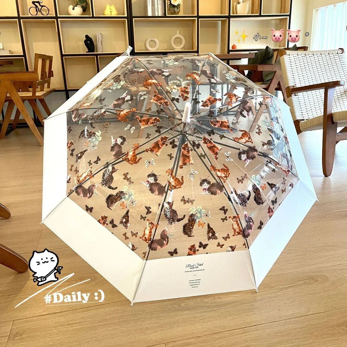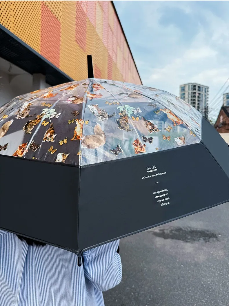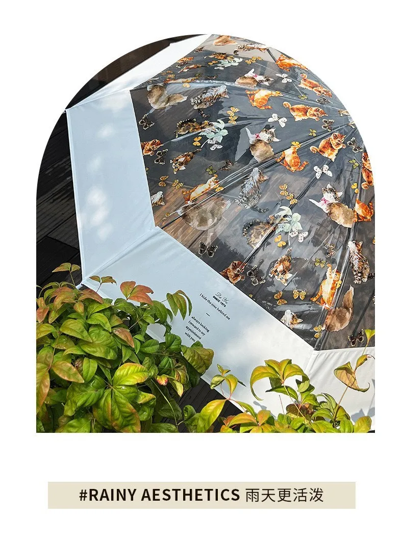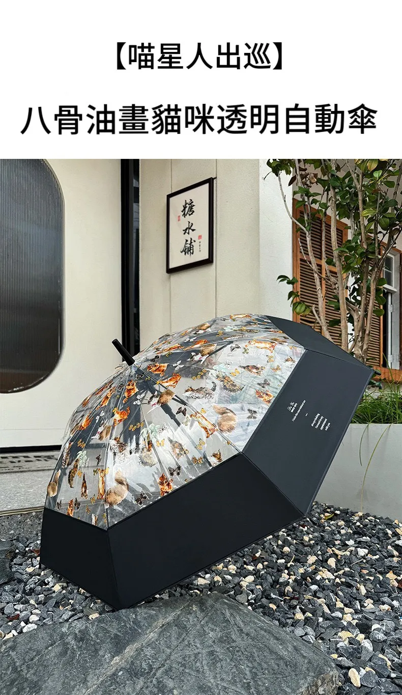 油畫感貓咪印花+清透傘面美得像在看展覽